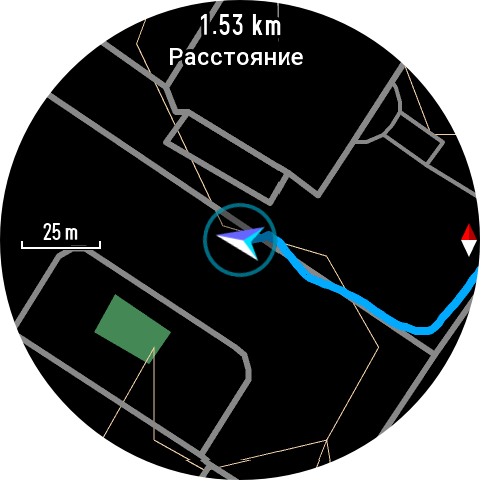 На последнем скриншоте с часов показал, что во время активности пишется трек. По нему можно вернуться обратно. Других меток поставить во время спорта нельзя.