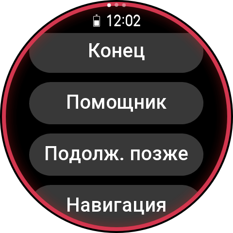 На первой фотографии выше в нижней части экрана видны три точки в круге — это работа голосового помощника на часах, который управляет опциями и вызывает программы по голосовым командам. Также таймер и секундомер могут работать в фоне. Можно делать голосовые заметки. Позже должна появиться опция по транскрипции таких заметок.