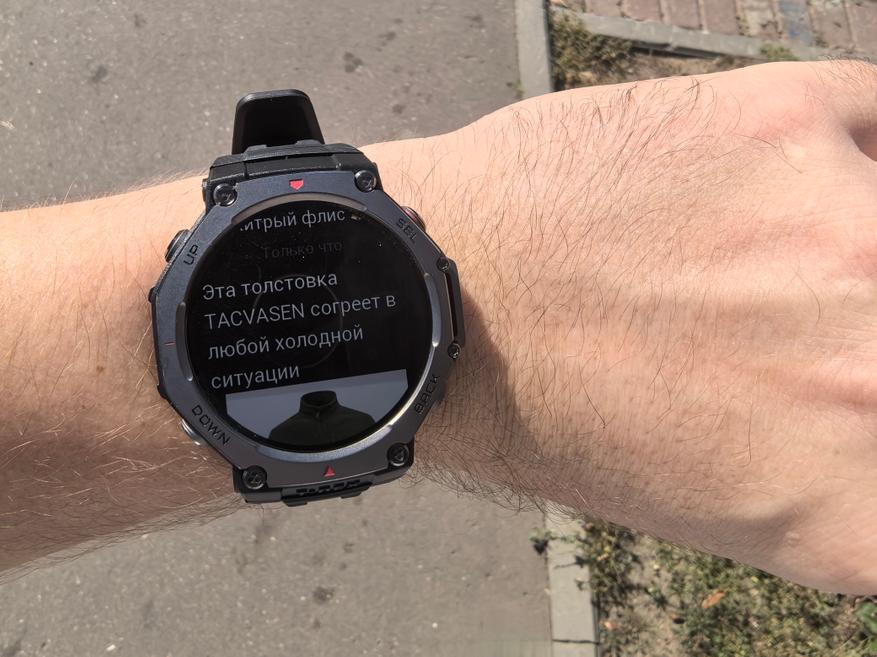 Уведомления в часах, как сказал в начале обзора, дали надежду, что когда-то у умных часов, отличных от WearOS, появится возможность «прочитывать» их, чтобы повторно не делать то же самое на телефоне. Тем не менее в некоторых моментах, как оповещение с вибрацией о том, что такси подъедет через 5, 4, 3, 2 и 1 минуту напоминали, как уведомления работали раньше (возможно, ничего не поменялось) на китайских фитнес-часах за, условно, 2000 руб. Подобное было у меня на Rogbid Tank S2 (обзор здесь). В подобные игры с ежесекундными оповещениями я наигрался, что называется, возвращаться не хочется. К счастью, в T-Rex 3 такие случаи были единичными. Часы Tank S2 могли вибрировать, пока идёт звонок и собеседник не взял трубку, в T-Rex 3 такого нет.