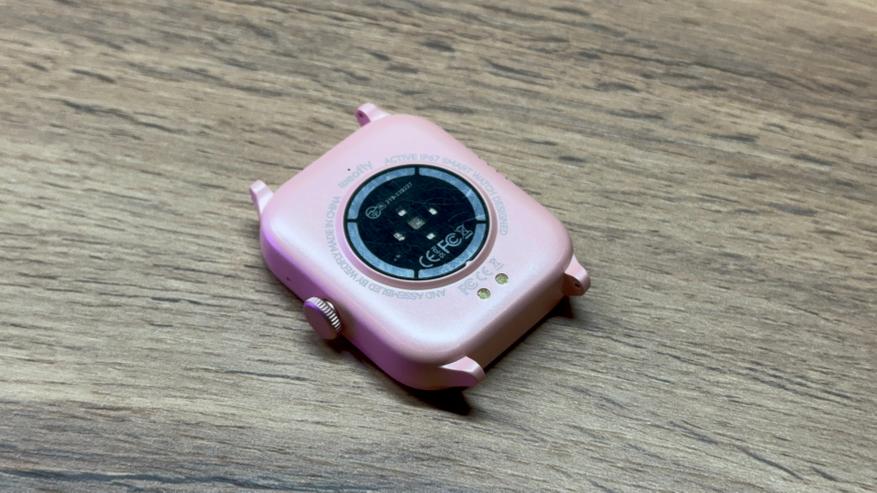 На тыльной стороне корпуса расположены датчики для мониторинга здоровья, покрытые защищенным стеклом. Там же контакты для магнитной зарядки.