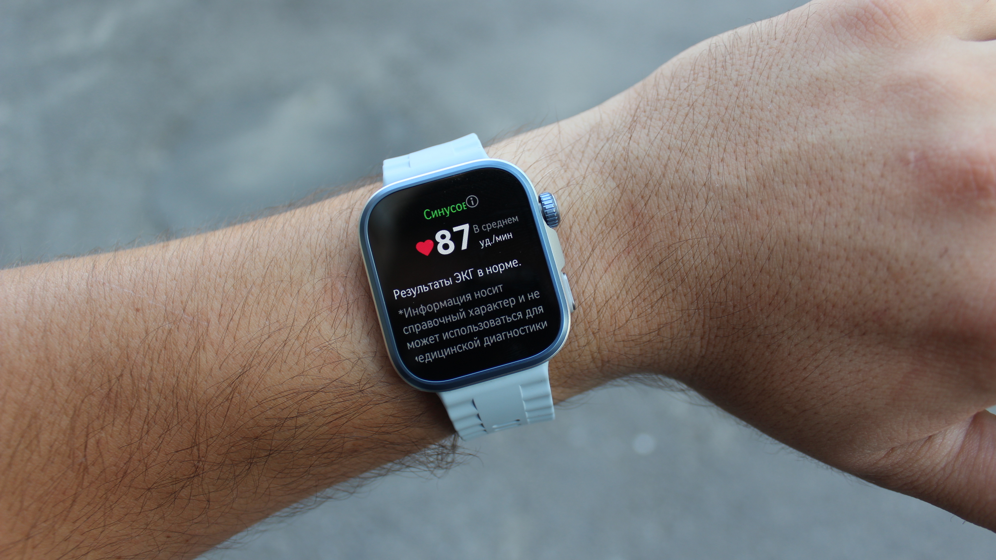 Также часы умеют снимать ЭКГ, для чего необходимо держать палец на электроде, расположенном на боковой панели.