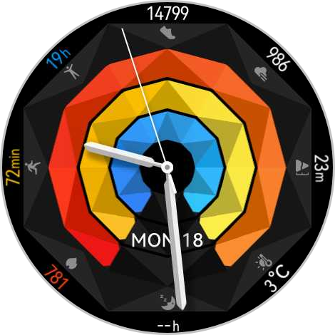 На следующих снимках показал доступные циферблаты. Можно установить свою картинку, можно настроить выводимую информацию в каждом. Использовать для этого нужную метрику здоровья, а не только ту, что предлагается в базе.