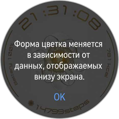 Есть и анимированные экраны, как показанные ниже. На первом — панда ест бамбук. На втором — форма цветка будет меняться в течение дня, в зависимости от отображаемой информации. Цветок, как планеты в смарт-часах HUAWEI Watch 4 Pro Space Edition, будет раскрываться и закрываться по прокрутке кнопки-колеса. Процесс сопровождается приятной вибрацией.