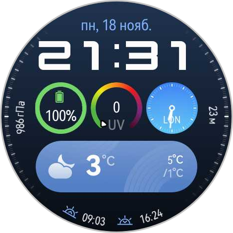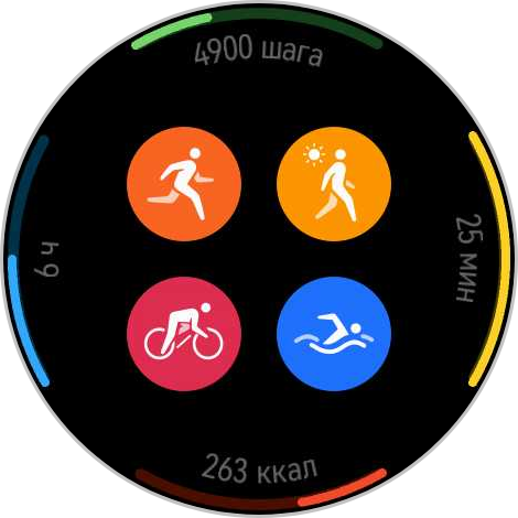 Ниже представил скриншоты с часов домашнего и других экранов. Их количество и порядок можно настраивать или с часов, или через приложение. Их добавляют разные бренды в свои часы по сдвигу вправо. Такой подход делает доступ к нужной информации быстрее. Я, к примеру, люблю минималистские и красивые циферблаты, так как сдвигом получаю нужную мне информацию.