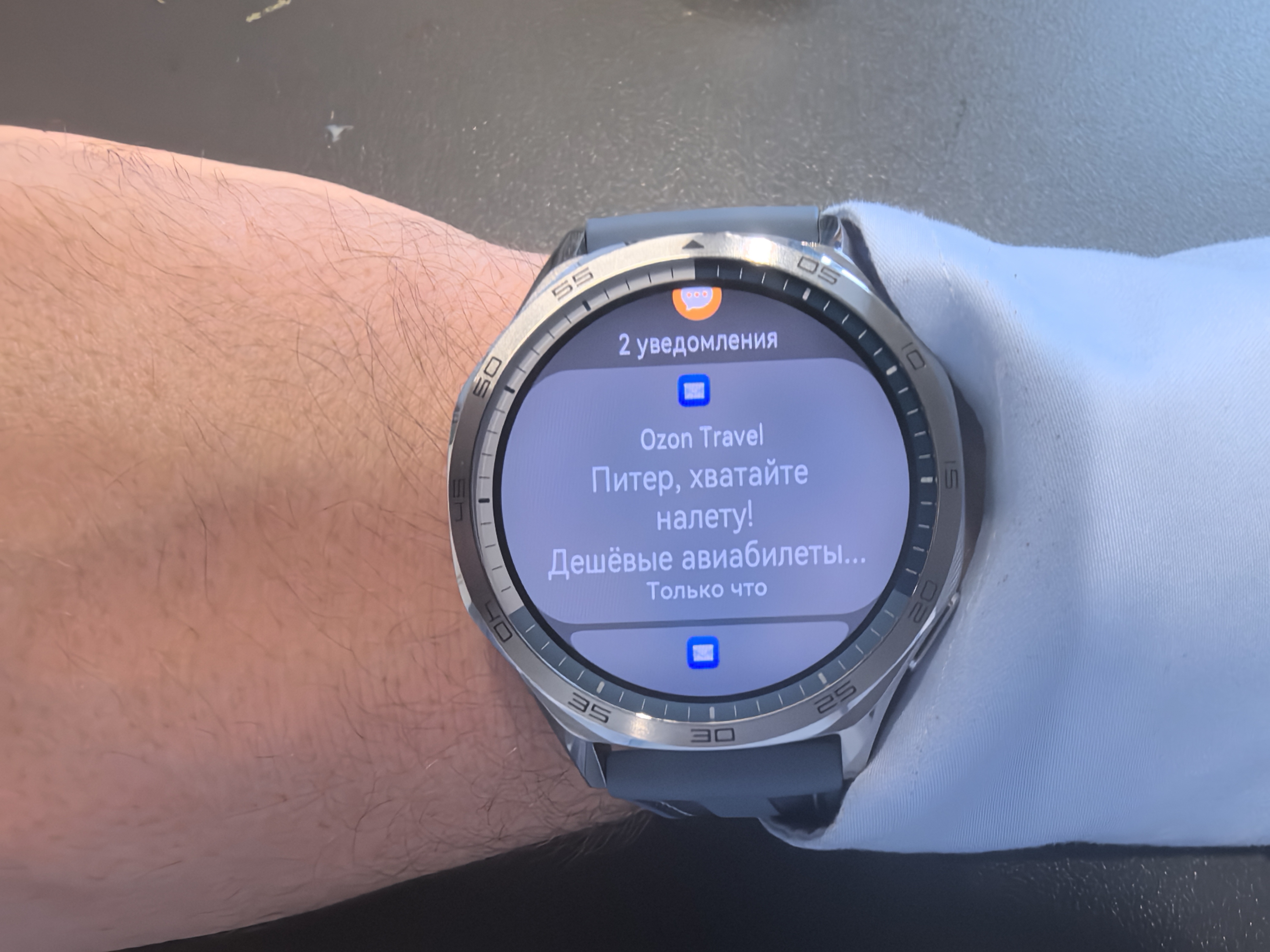 Если удалить оповещение с часов, то в телефоне оно останется. Если удалить с телефона, с часов оно также исчезает. Если бы алгоритм работал в обе стороны, то это была бы полная аналогия со смарт-часами на WearOS. Пока что HarmonyOS уступает своей конкурирующей системе от Google. Поэтому HUAWEI Watch GT 5 пока не смарт-, а фитнес-часы. Плюс HarmonyOS в меньшем разряде аккумулятора, особенно при включенном AOD.