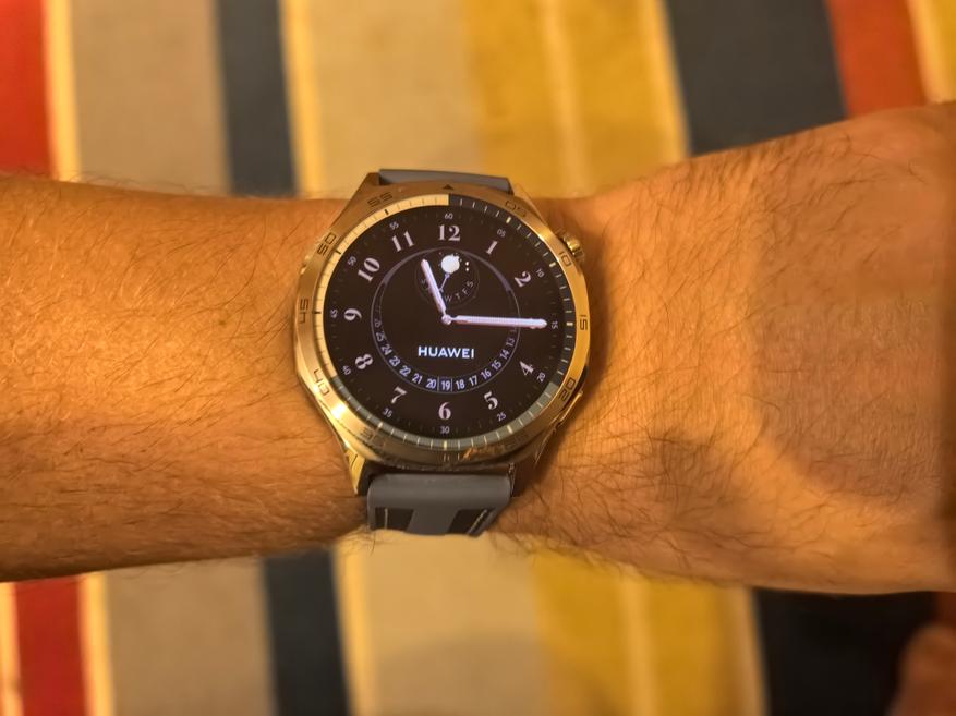 Метрика «Артериальной жёсткости» — опция, которая не зависит от процессора. В прошлом году она была «флагманской», в этом — уже нет. Такое поведение — стандартное не только для сегмента умных часов, когда прошлогодние опции топовых товаров появляются в менее дорогих. Мне Watch GT нравится ещё разными диагоналями экранов, 1,43″ и 1,32″. После часов с 1,5″ и 1,82″, а тем более 2,0″, экран обозреваемых смотрится минималистично и приятно. Есть пользователи, кому большой экран не подойдёт по размеру запястья, поэтому спрос у GT-серии есть. Как минимум для меня, синий плетёный ремешок часов подходит под цвет рубашек. Мне такое сочетание нравится!