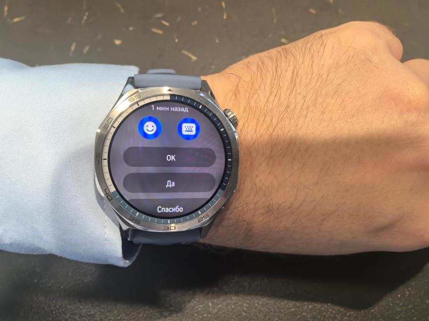 В новой операционной системе появилась возможность отвечать на сообщения любым текстом. Это та опция, которую все так долго ждать, в частности я. Как понимаю, такая возможность вскоре будет и на других моделях. Если в Amazfit T-Rex 3 это можно делать при помощи помощника, надиктовывая ему текст, то в Watch GT 5 можно набирать самостоятельно, правда на клавиатуре, как у кнопочных телефонов. С такой опцией обозреваемые часы можно даже отчасти называть и смарт-часами, но конечно, это будет большое преувеличение. Все равно, серия Watch GT у HUAWEI считается флагманской по сравнению с другими брендами и написание любых ответов выделяет ее от конкурентов. Это мое мнение, кто любит и ценит именно смарт-часы и с интересом состоит на развитие сегмента вообще. В недалёком будущем отличить фитнес- от смарт-часов будет уже невозможно. У меня получалось вызывать меню набора текста для ответов на смс, в мессенджерах.
