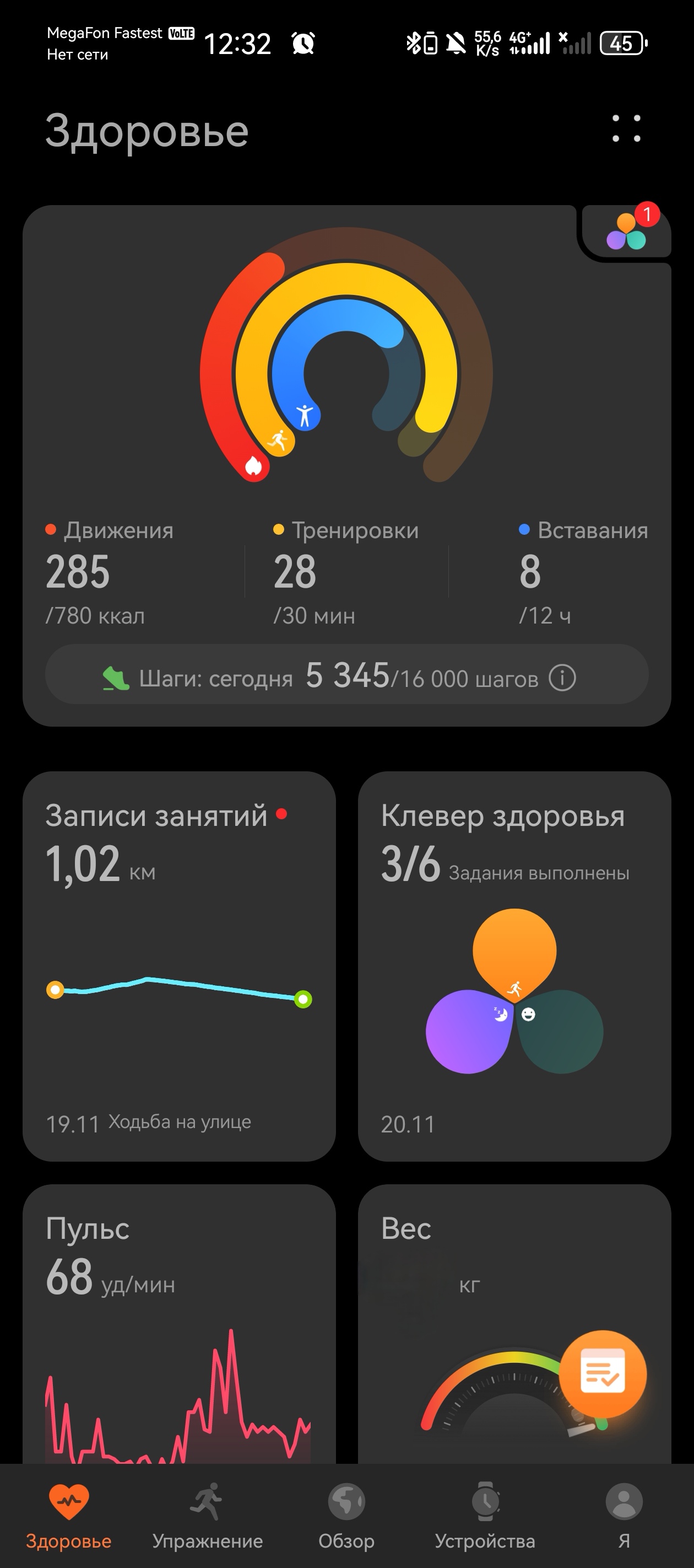Оповещения на часы приходят быстро. Во время сравнения с моделью Amazfit, на вторые они приходили после первых. Иконок оповещений как не было на прошлой версии ОС, так их и нет в новой HarmonyOS. Оповещения группируются по программам. Так легче видеть, сколько всего было пропущено оповещений.