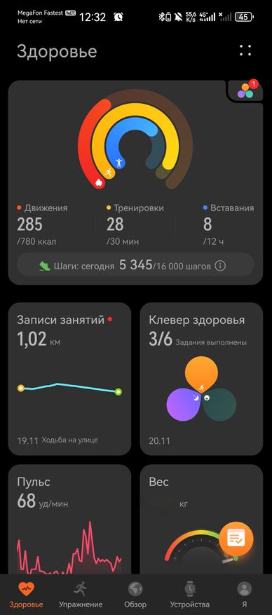 Как понял для себя, по итогам сравнения подсчёта шагов за день, адекватные по этому показателю модели имеют интервал в 600 шагов, но чем ниже разброс, тем, конечно, лучше. В тесте на сравнение данных на 1 км разброс должен быть около 50 м и ниже, или в шагах — 50 шагов, чтобы не было вопросов к адекватности определения показателя умными часами. HUAWEI Watch GT 5 удовлетворяют обоим критериям. Лучшие ли они среди других аналогов? Нет, так как рынок высококонкурентен, но свои поклонники у фитнес-часов HUAWEI найдутся, как и у других брендов. Конкуренция в сегменте фитнес-часов дошла до того уровня среди известных брендов, что выбирать можно по картинке (после прочтения подобных опытов эксплуатации, чтобы понимать, метрики здоровья у них определяются адекватно).