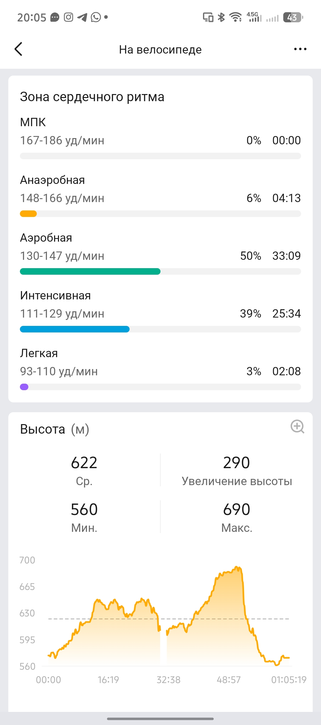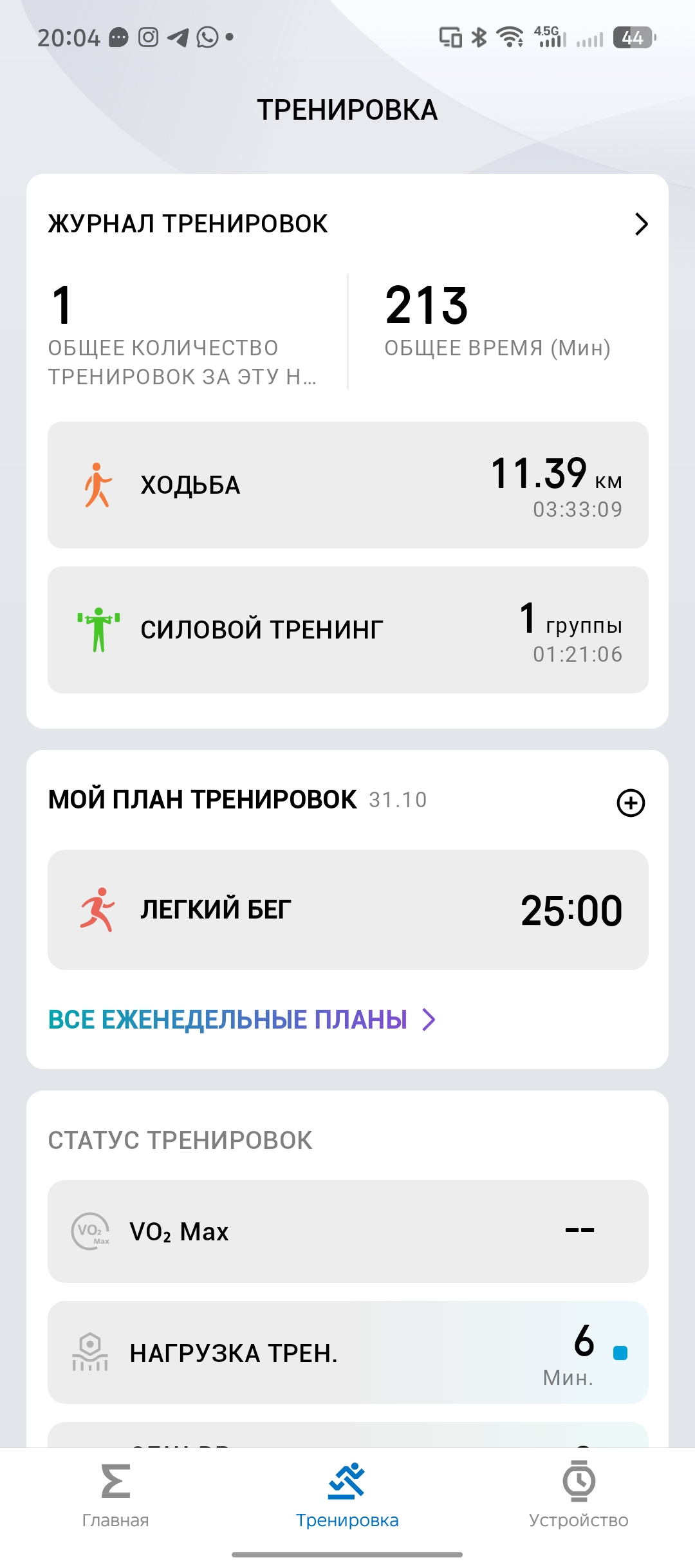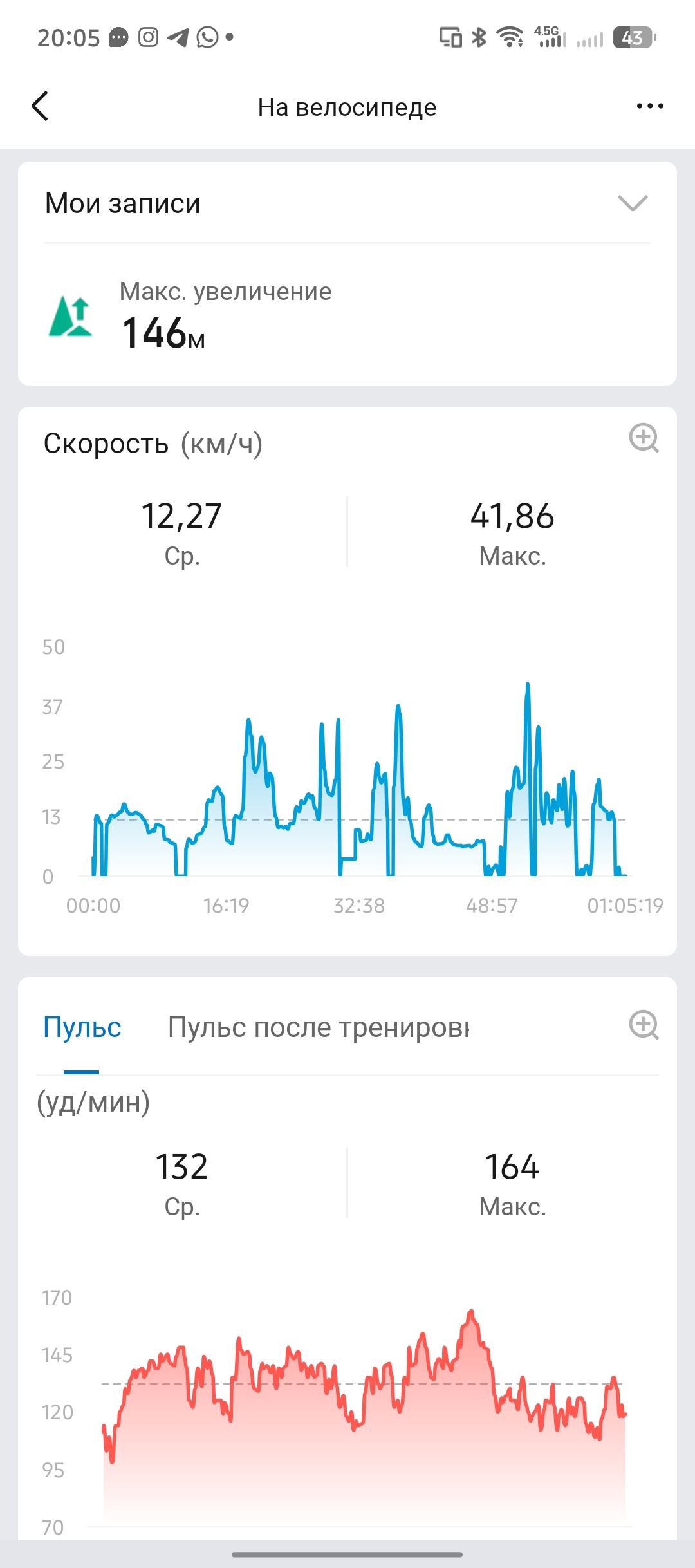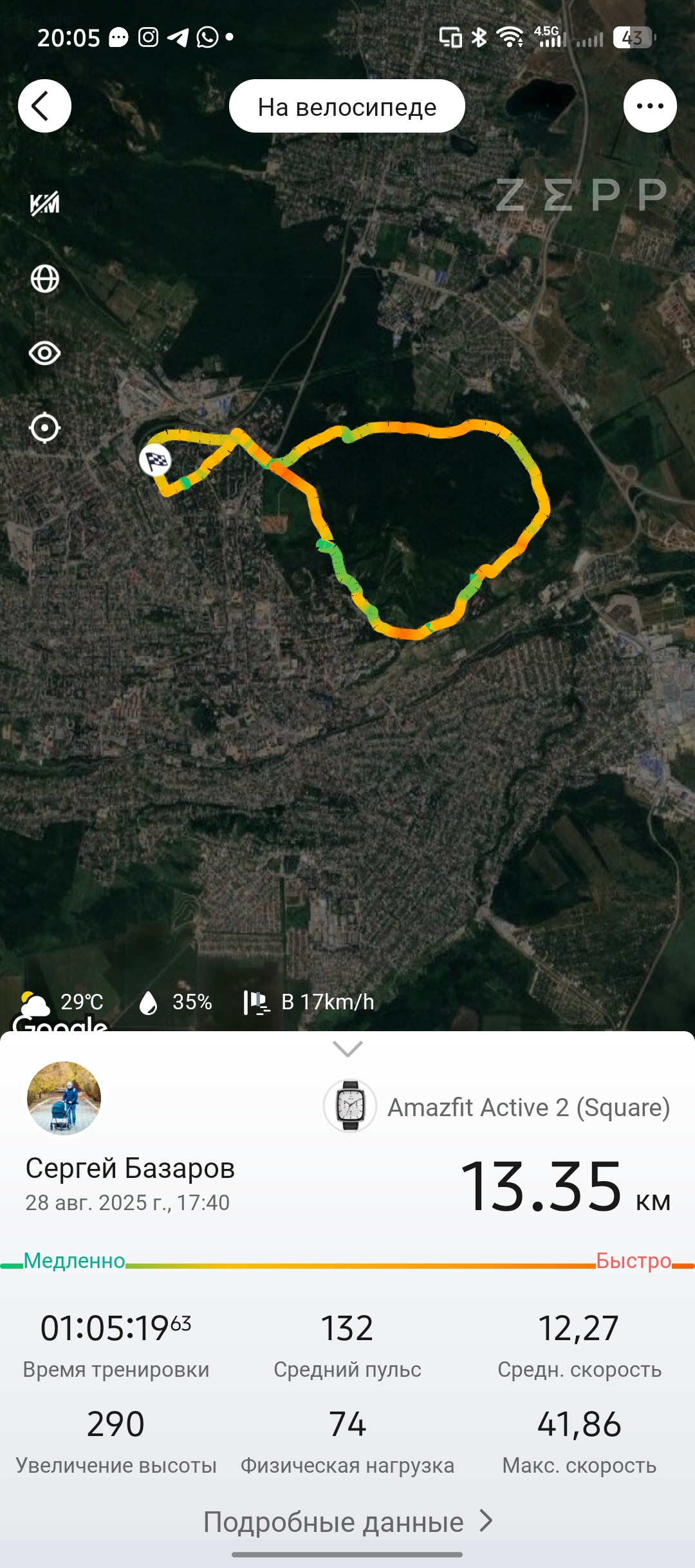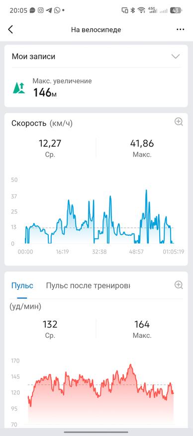 Обычные тренировки сопровождаются детальной статистикой о высоте (если речь о походах и хайкингах), пульсе, скорости и зонах сердечного ритма. Если вы предпочитаете экспортировать данные о своем маршруте, то Zepp может предложить 3 варианта на выбор: GPX, TCX и FIT. Отдельного способа поделиться своими данными в Strava, Google FIT или Relive я не нашел.
