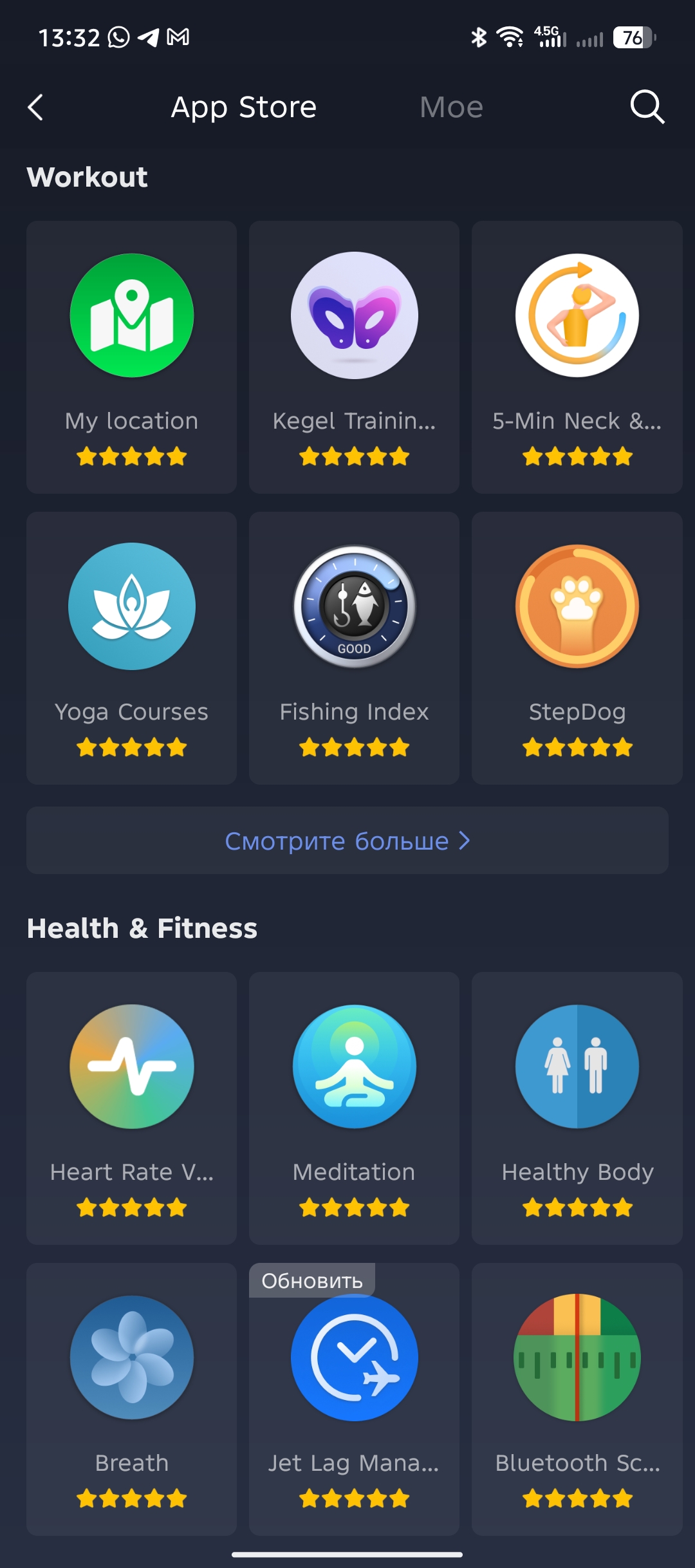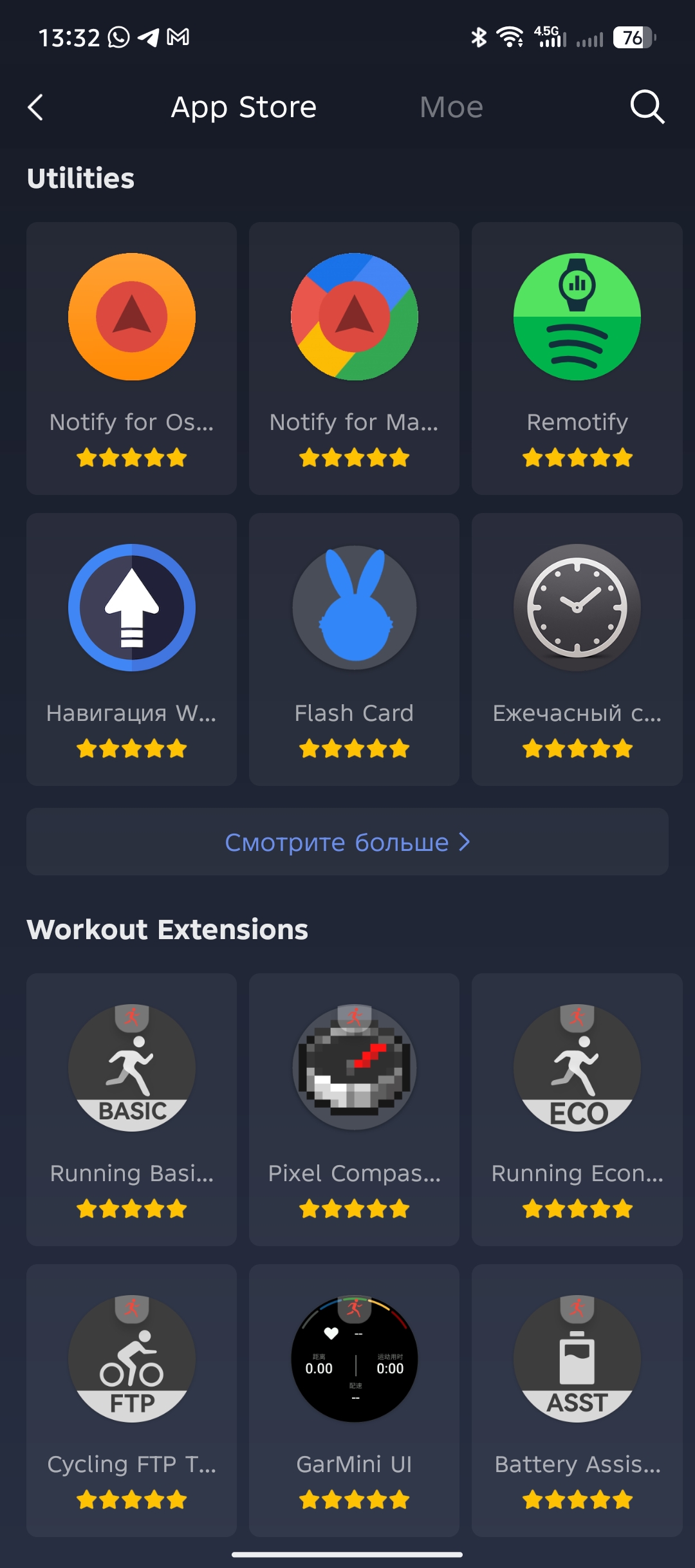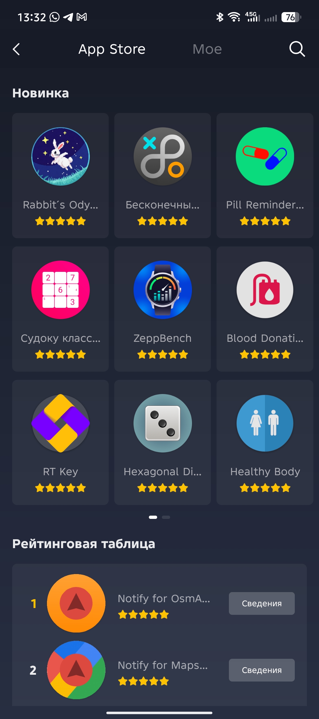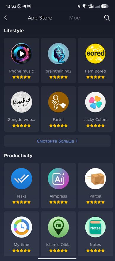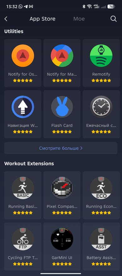 Если вы предпочитаете брать по максимуму от часов, то Zepp позволяет устанавливать на них приложения, которых я насчитал более 150 штук только в рейтинговой таблице, не считая списков. Все они поделены на категории и поддерживают обновления. Есть даже игры, если совсем стало скучно. На удивление, штатный софт по измерению пульта представлен отдельным приложением для которого доступны периодические обновления. Установка происходит в ручном режиме, поэтому периодически проверяйте наличие обновлений. Среди полезных приложений я нашел BT оповещение, которое уведомляет о потере и восстановлении сигнала с телефоном, Tasks для синхронизации списков дел с Google/Microsoft/TickTick/Nextcloud и Предпросмотр цвета, позволяющий самостоятельно настраивать цветовую гамму системы часов.