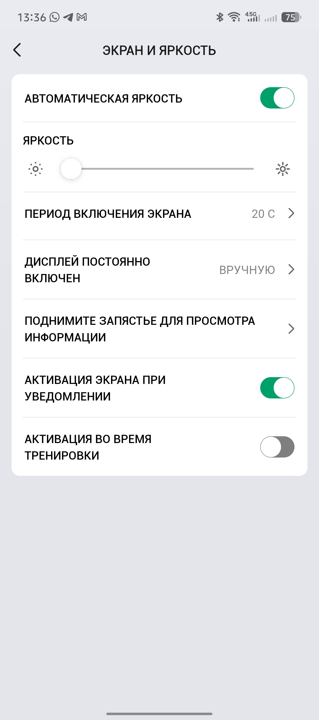 - Максимальная яркость экрана автоматически снижается при падении уровня заряда ниже 30%;