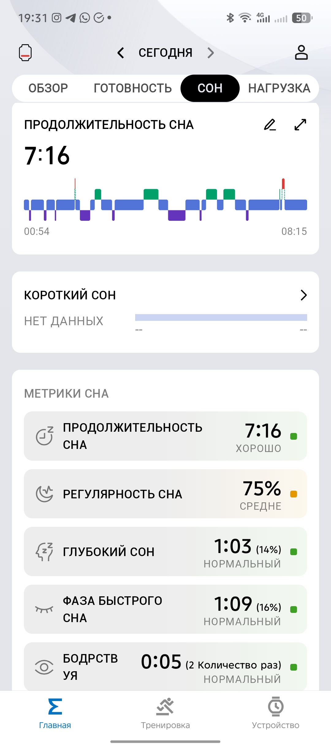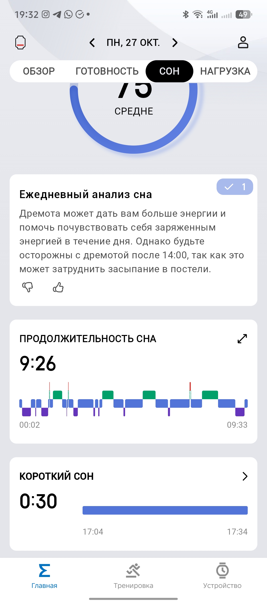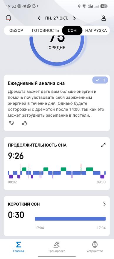 Помимо этого, удобно мониторить дневной сон, который стал идеально соответствовать времени засыпания и пробуждения.