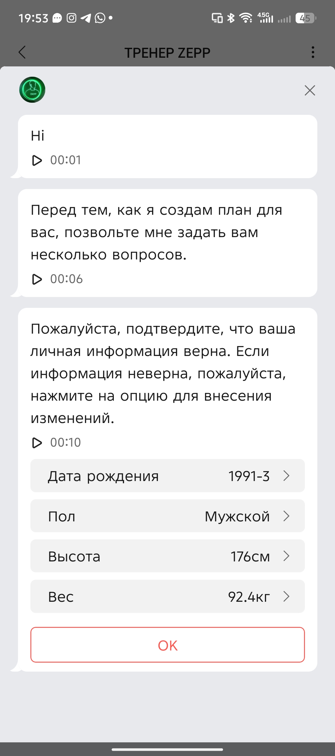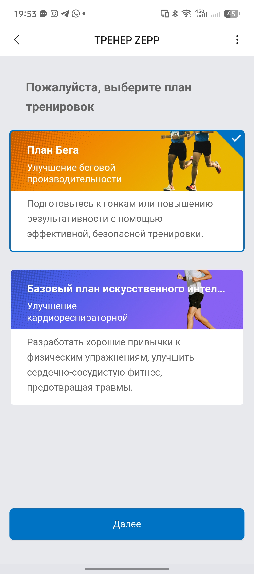 Что касается спортивных дисциплин, то в Zepp есть целый раздел, в котором можно создать свой собственный план тренировок Zepp Coach, персонального тренера на основе ИИ. Он проведет опрос и выявит ваши сильные и слабые стороны, после чего предложит детальный план на указанный ваши срок (например, вы хотите подготовиться к полумарафону).