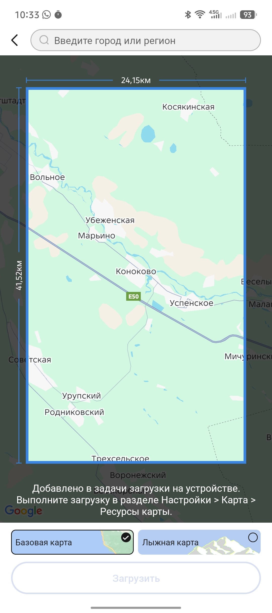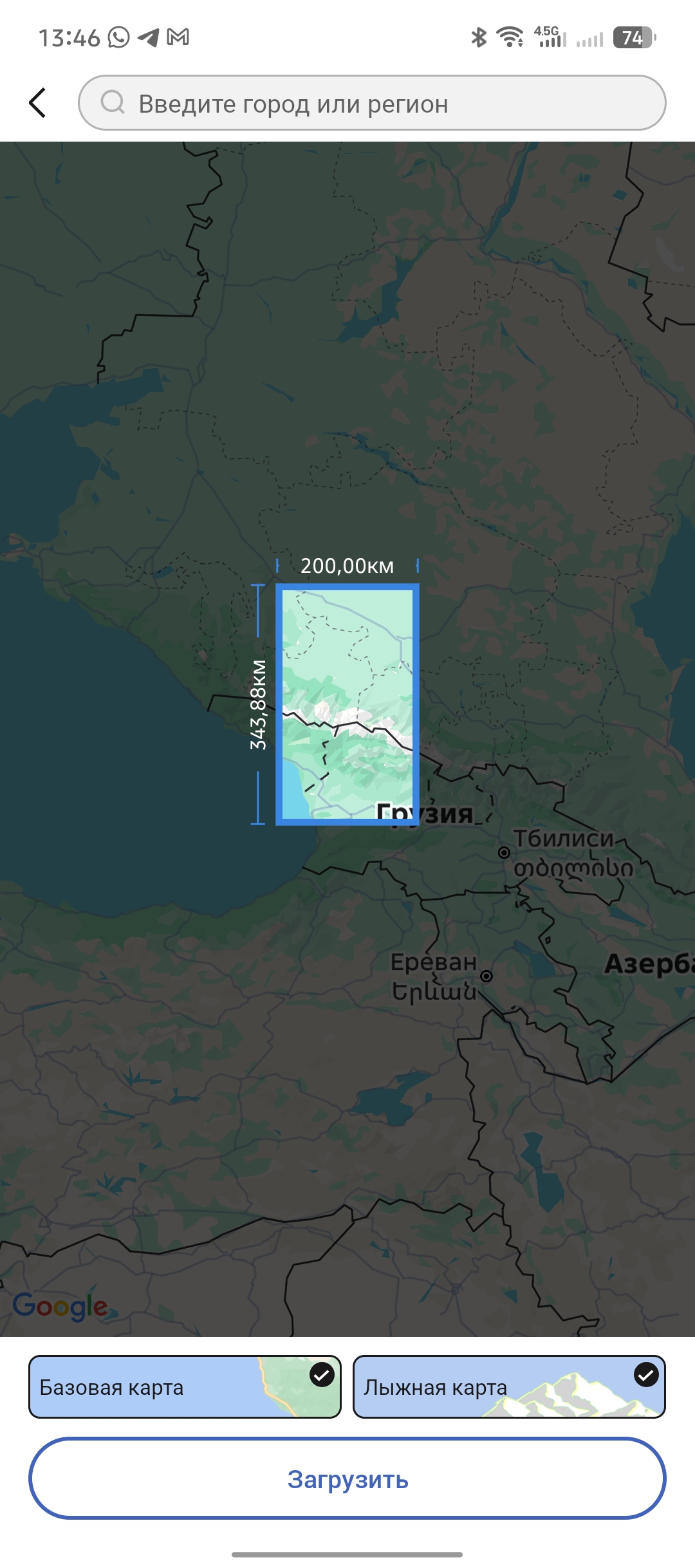 Еще один приятный бонус, можно закачать офлайн карты выбранной области и использовать её в качестве навигатора на местности. Простым свайпом можно выбрать площадь карты, которая будет загружена на часы. Максимальная площадь — 68 776 км², минимальная — 1269,11 км².