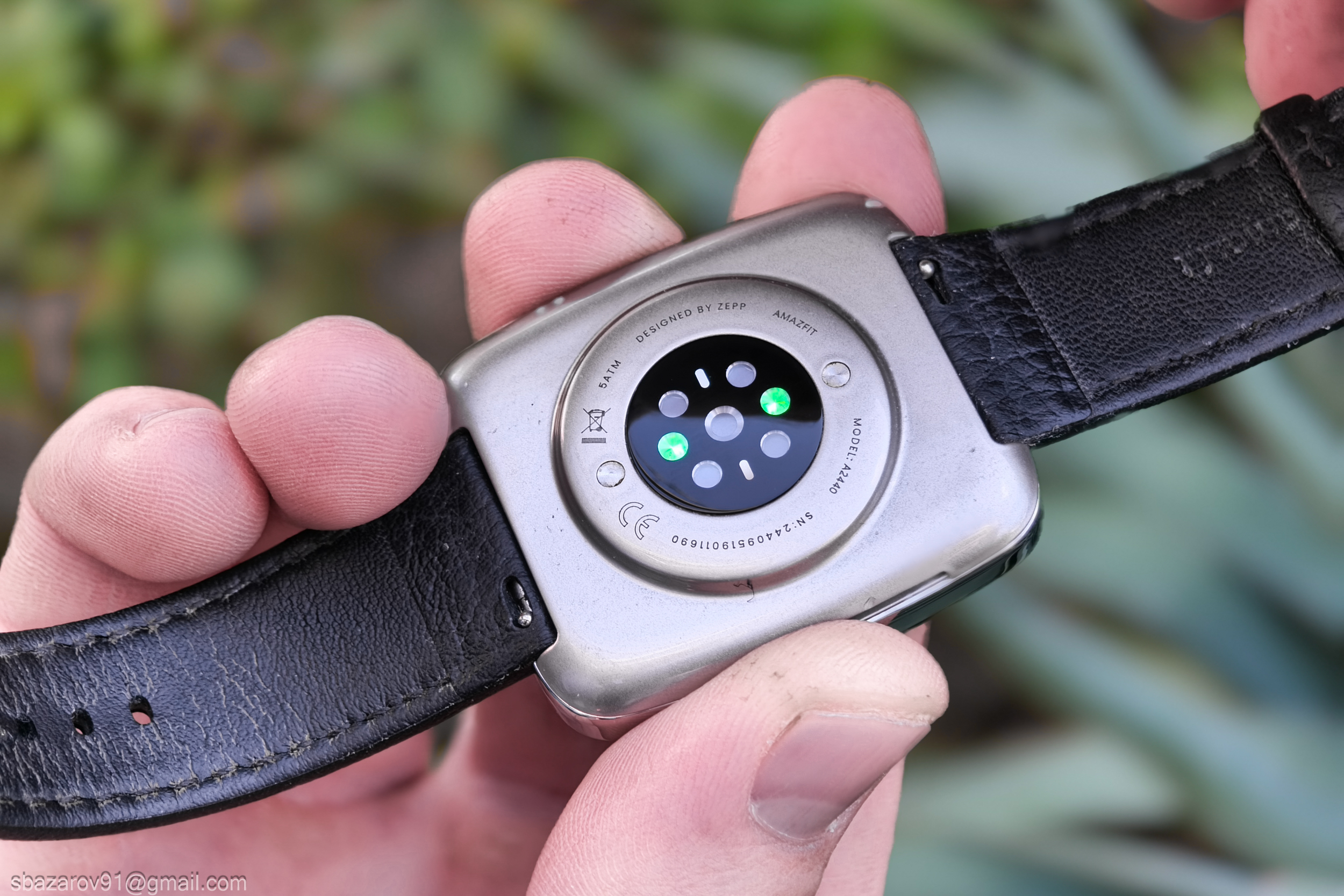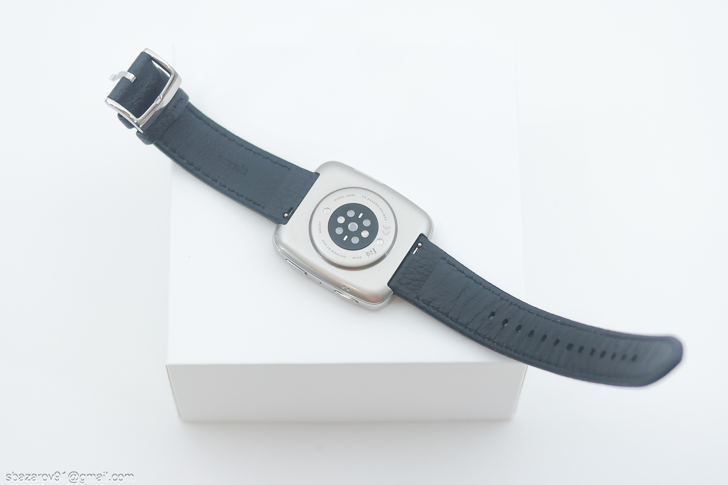 На обороте обновленный датчик BioTracker 6.0, магнитные контакты для зарядки и быстросъемные соединения для ремешка. Для более детальной работы часы оснащены дополнительными датчиками: ускорения, гироскоп, геомагнитный, барометрический высотомер, освещенность и температуры.