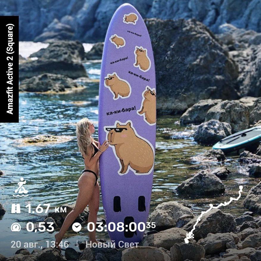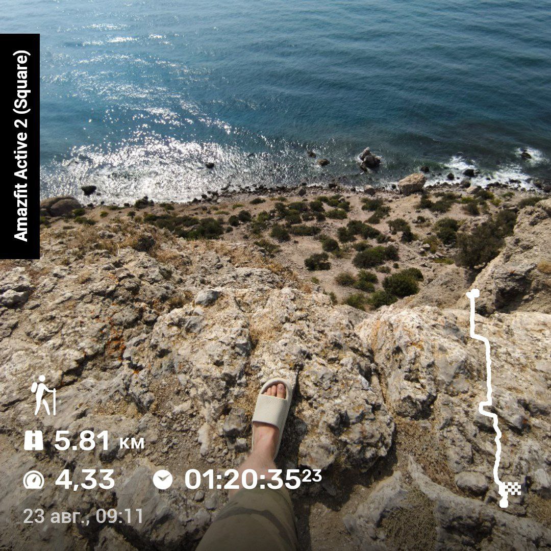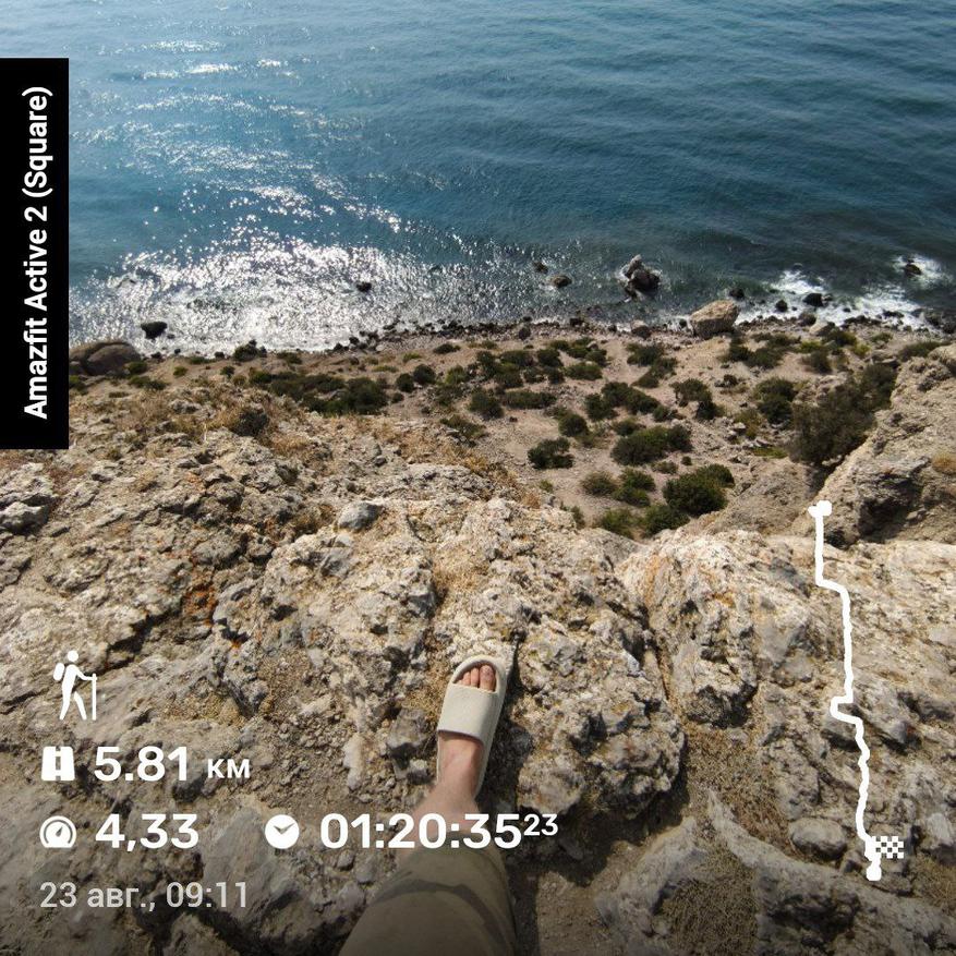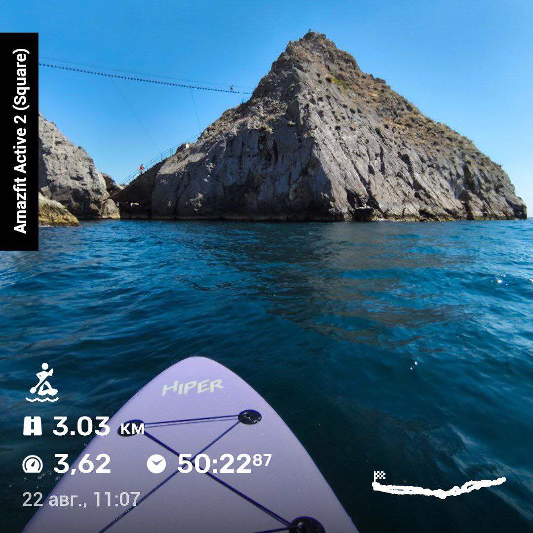 Amazfit Active 2 поддерживает 5 спутниковых систем позиционирования, поэтому в идеальных условиях (когда навигация не глушится) связь со спутниками устанавливается за 15-20 секунд. На вершине горы Ай-Петри в Крыму я лишь единожды смог подключиться, тогда как все остальные попытки не увенчались успехом. Если же стояла задача поплавать на сапе в Черном море, то тут 50 на 50.