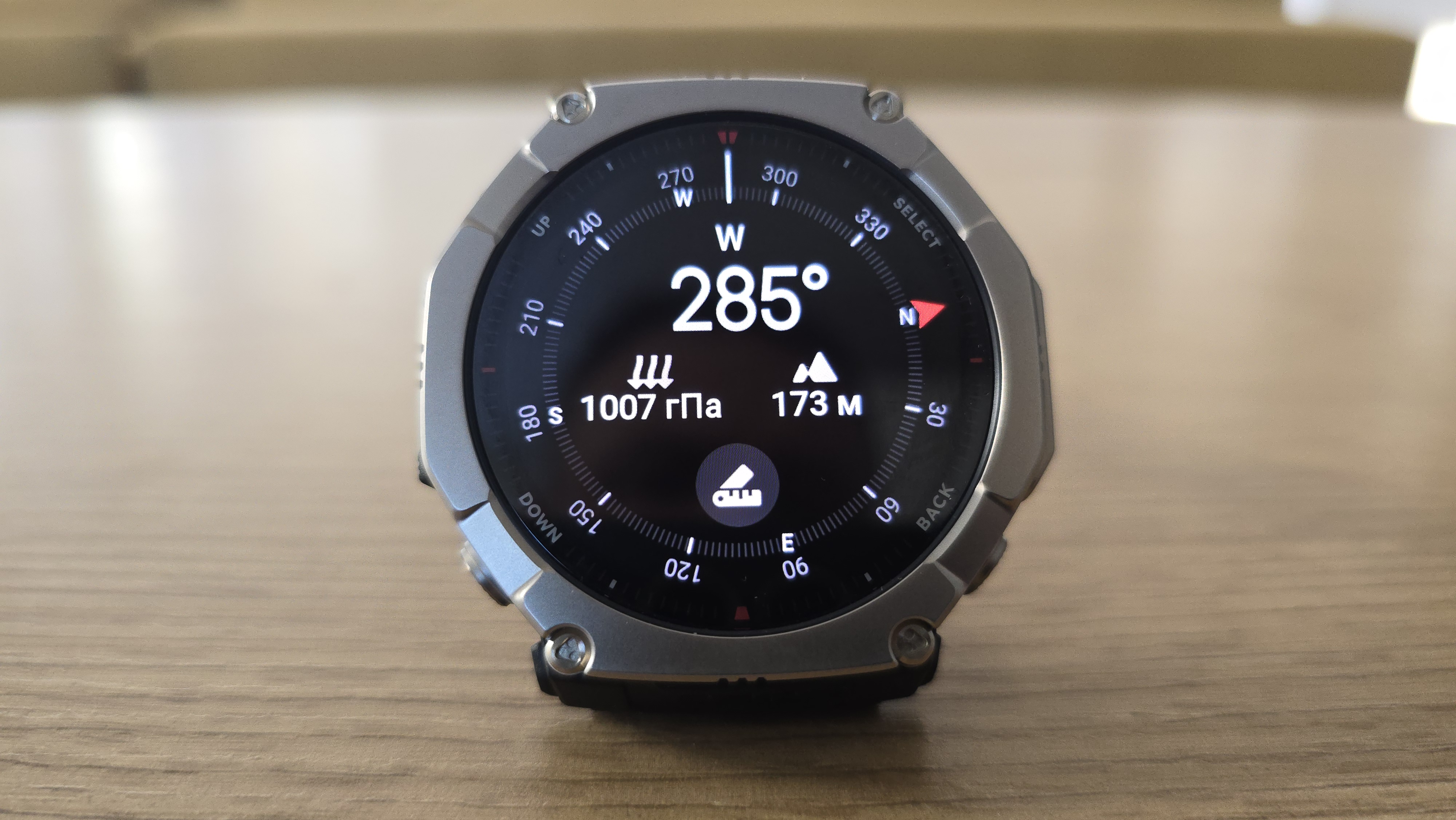 Интересно было посмотреть, как ведет себя компас. Калибровка проходит быстро, нужно сделать стандартные движения рукой, и через несколько секунд все готово. При повороте руки стрелка реагирует сразу, без пауз. Если развернуться на 180 градусов, направление меняется корректно. Во время прогулки компас не «гулял» и не показывал странные отклонения. Повторной калибровки в ходе одного маршрута не потребовалось.