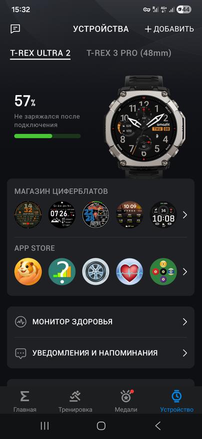 Отмечу один момент — загрузку скинов и приложений через Zepp. Установка циферблатов и дополнительных модулей проходит достаточно быстро. После нажатия на установку передача начинается почти сразу, долго ждать не приходится. Субъективно этот процесс идет быстрее, чем это было у меня с T-Rex 3 Pro. Разница не в разы, но по ощущениям загрузка и запись на часы происходят более оперативно.