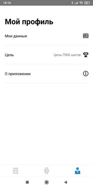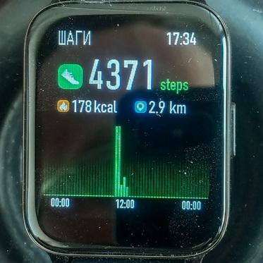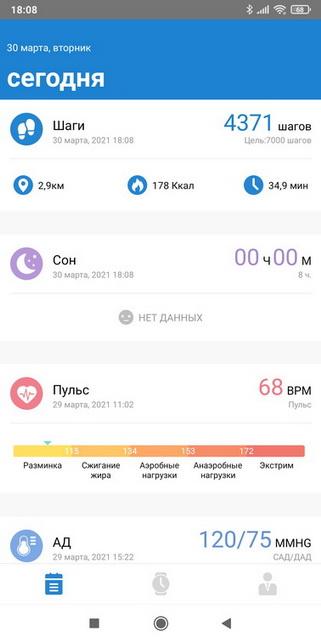 • статистика физической активности за текущий день (количество шагов, сожженных калорий и пройденный километраж);