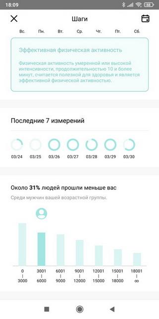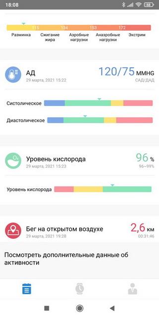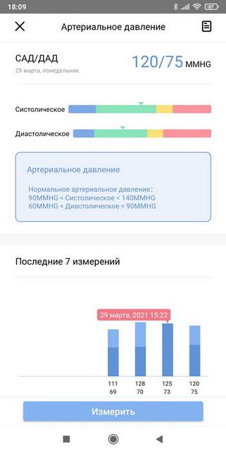 • Также в приложении можно смотреть подробную статистику измерений (давления, пульса и т.д.) и спортивной активности.