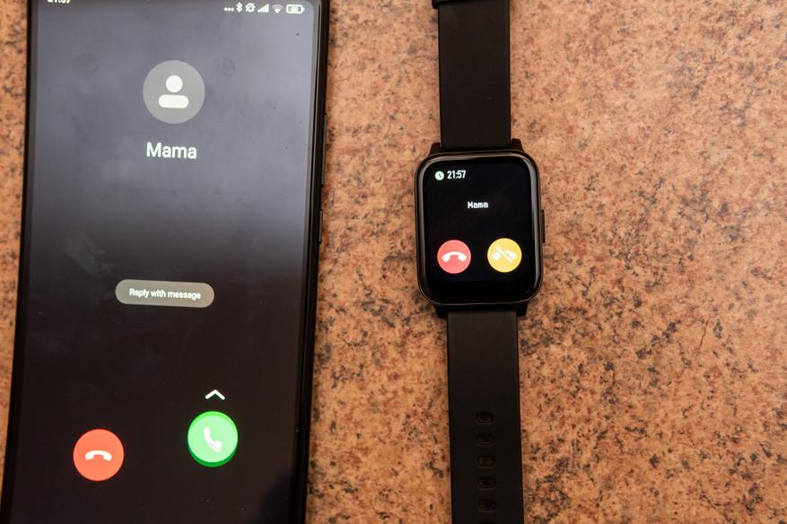 • При входящем звонке часы вибрируют и отображают имя / номер звонящего. Можно отклонить звонок или убрать уведомление и вибрацию часов (но звонок не скинется).