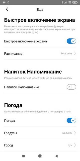 • Есть возможность настроить в какой период времени активация дисплея при поднятии руки будет отключена (например, чтобы во время сна дисплей не активировался при движении рук).