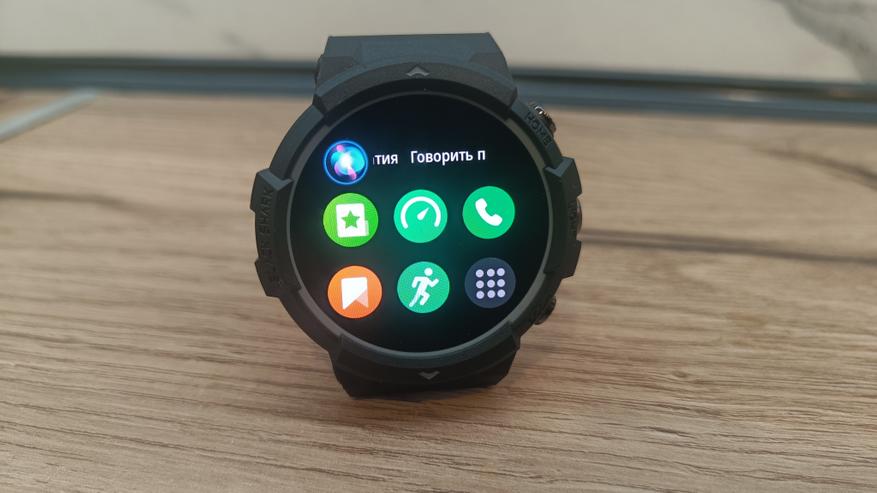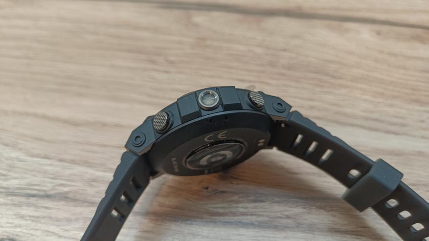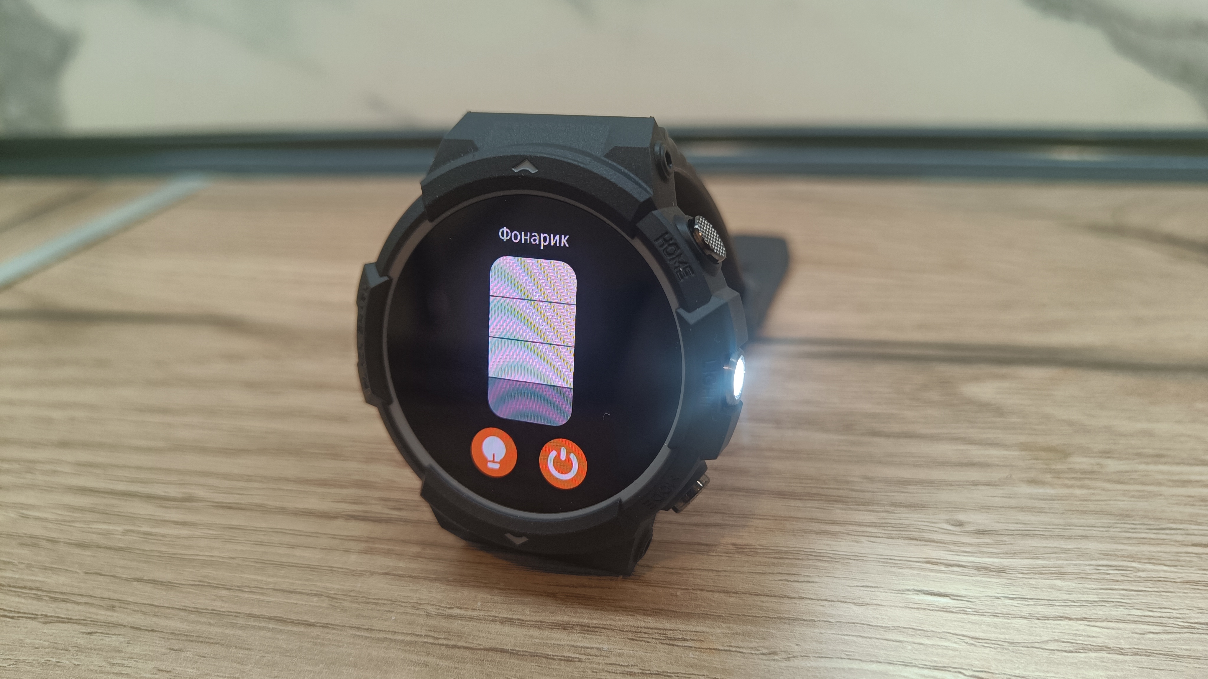 Управление 2 кнопками, которые размещаются с правой стороны корпуса. Верхняя отвечает за переход в основное меню, а нижней — запускаются спортивные режимы. Под кнопками можно увидеть отверстия микрофона, а с обратной стороны размещается динамик. Между кнопками размещается светодиодный фонарик. Включение только в настройках, там же и регулировка по яркости. Время работы фонарика ограничено 10 минутами и в дальнейшем можно будет перезапустить.