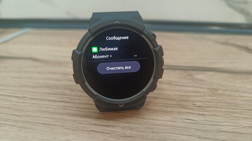 Уведомления, приходящие на смартфон, размещаются в нижней части экрана. Поддерживается русский язык и многостраничный вариант выводимого текста. Это значит, что весь или большая часть текста будет в уведомлениях на часах.