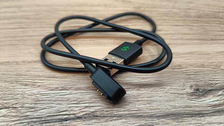 Внутри размещается провод заряда и сменные ремешки. В бумажной документации на китайском и английском языках для меня полезным стала лишь возможность загрузить QR код, чтобы установить мобильное приложение. Провод зарядки на магнитной основе, но с контактной группой для заряда.