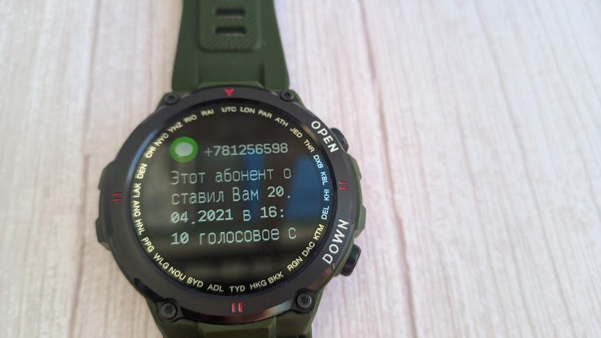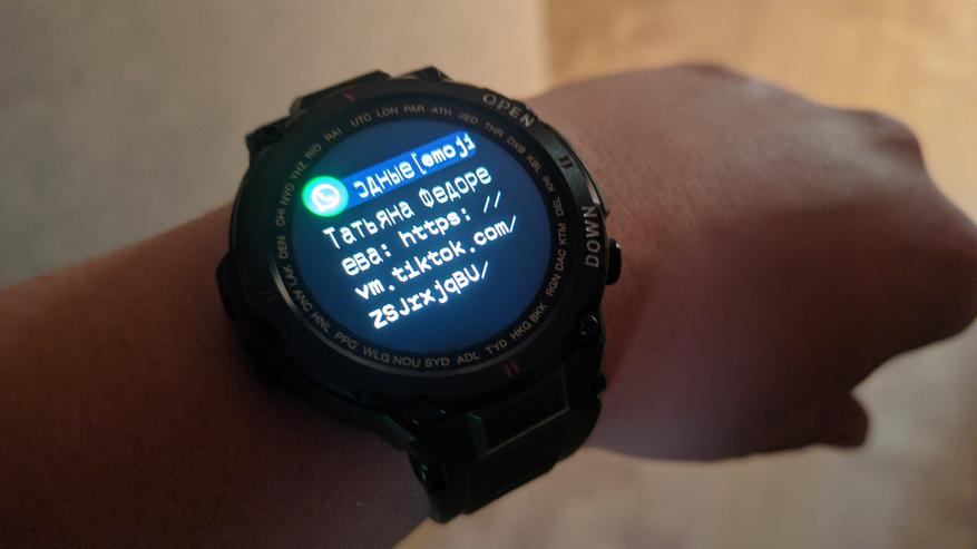 При входящем уведомлении можно прочитать его текст на дисплее часов