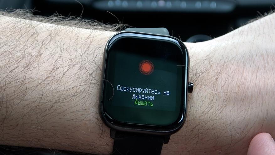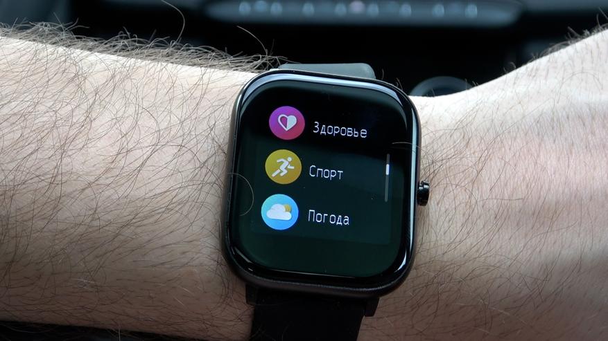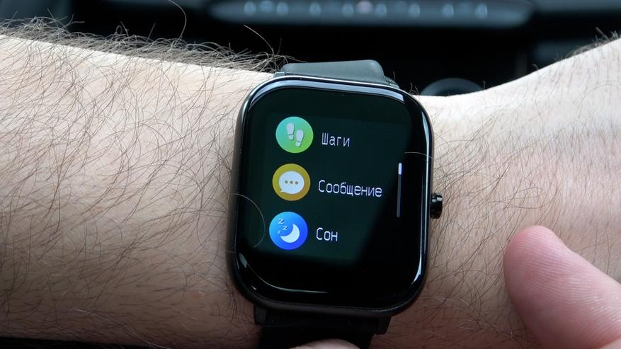 При «свайпе» вверх или вниз, мы попадаем в основной раздел, тут управление всем функционалом часов. Просмотреть состояние шагов, прочитать сообщение, статус сна, сколько он длился и т д, в подразделе здоровье, можно замерить пульс и тренировка дыхания, на 8 вдохов и выходов, состояние спортивных занятий, погода,