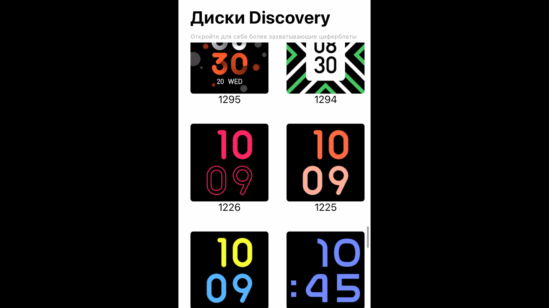 Циферблаты — вот тут как раз находится изобилие различных вариантов и я думаю любой человек найдет себе подходящий. Я листал — листал, так и не смог дойти до момента когда закончится эта лента...