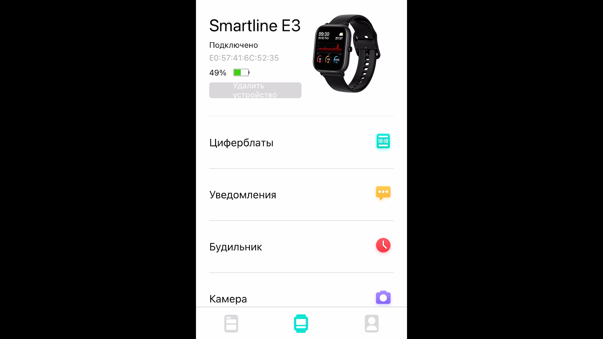 Перейдя в подраздел настройки часов тут мы увидим состояние подключения и процент зарядки, в данный момент я проходил уже 6 дней и заряд упал на 51%