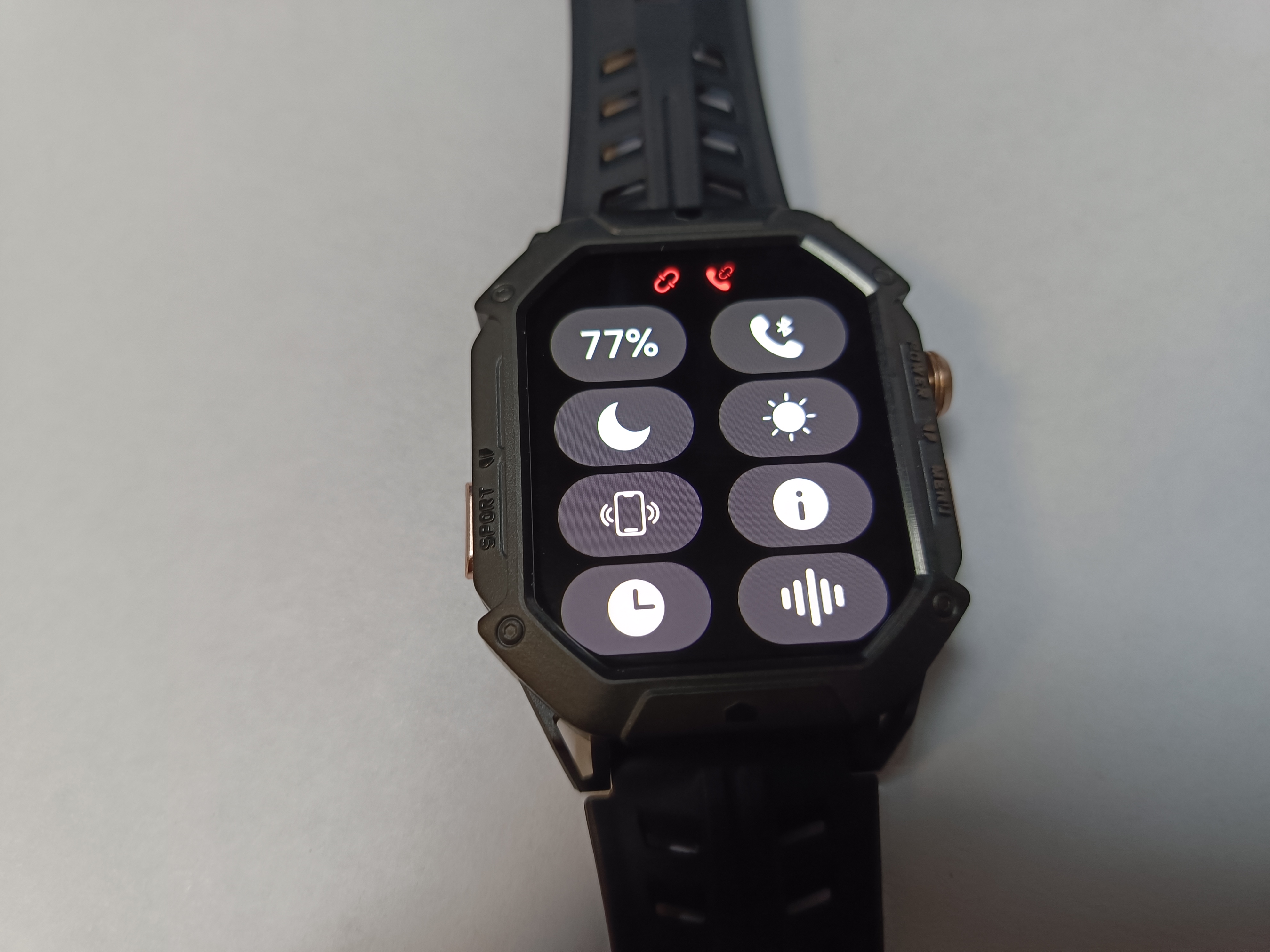 Для этого дисплея хотелось бы парочку игр, но их здесь нет, как фонарика и GPS. Еще недостаток для меня, что нельзя перепрограммировать боковые кнопки. Кстати, фонарик заменяет быстрая панель доступа слева направо, где открываете погоду, и она светит синим цветом очень ярко. Ярче, чем фонарик на Huawei GT2.