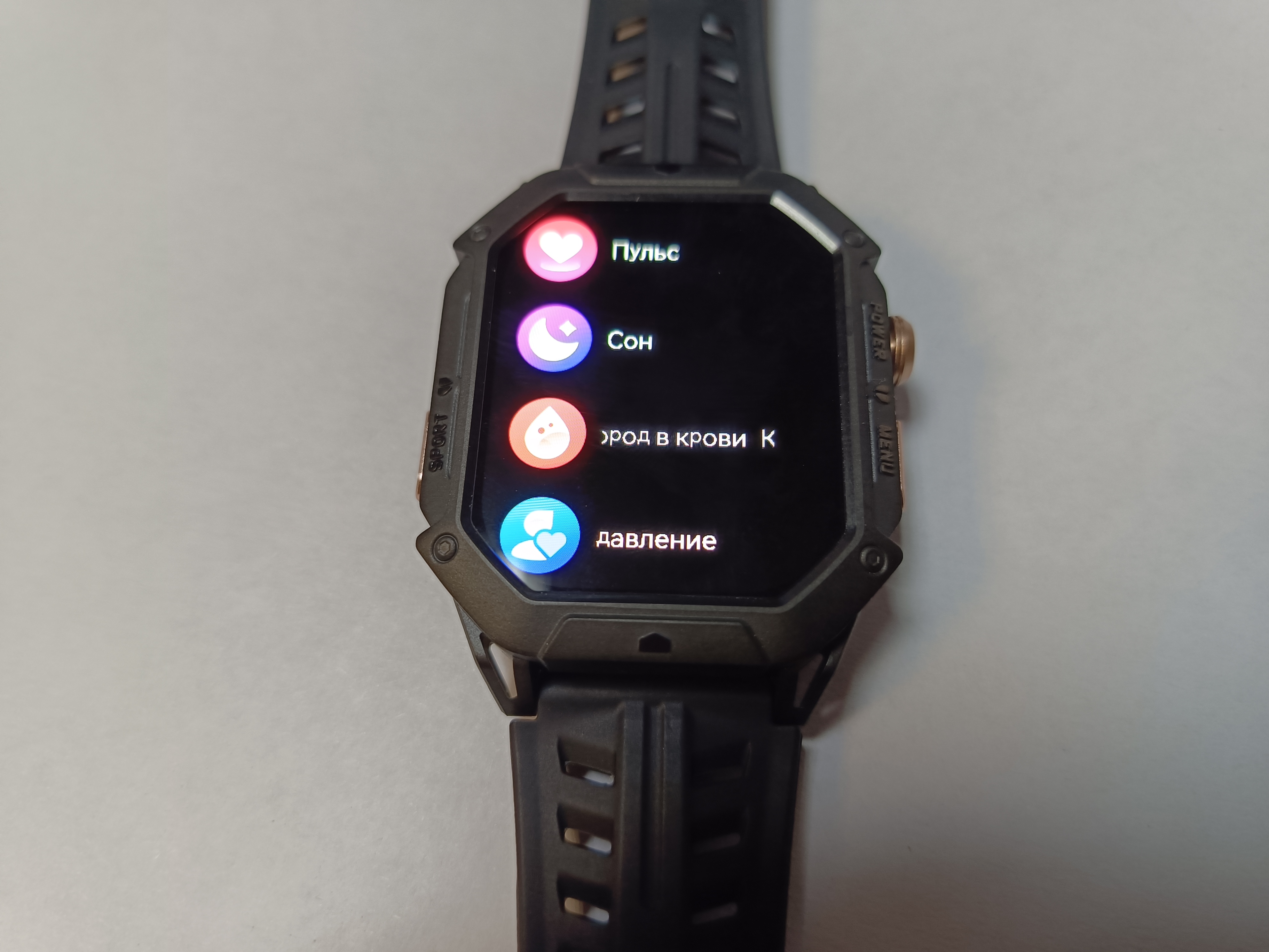 Есть пульсометр, кислород, шагомер, даже давление. Пульс показывает в целом правильно, шаги также. Остальное сложно сказать. Давление какие-то цифры есть, но они все поверхностные.