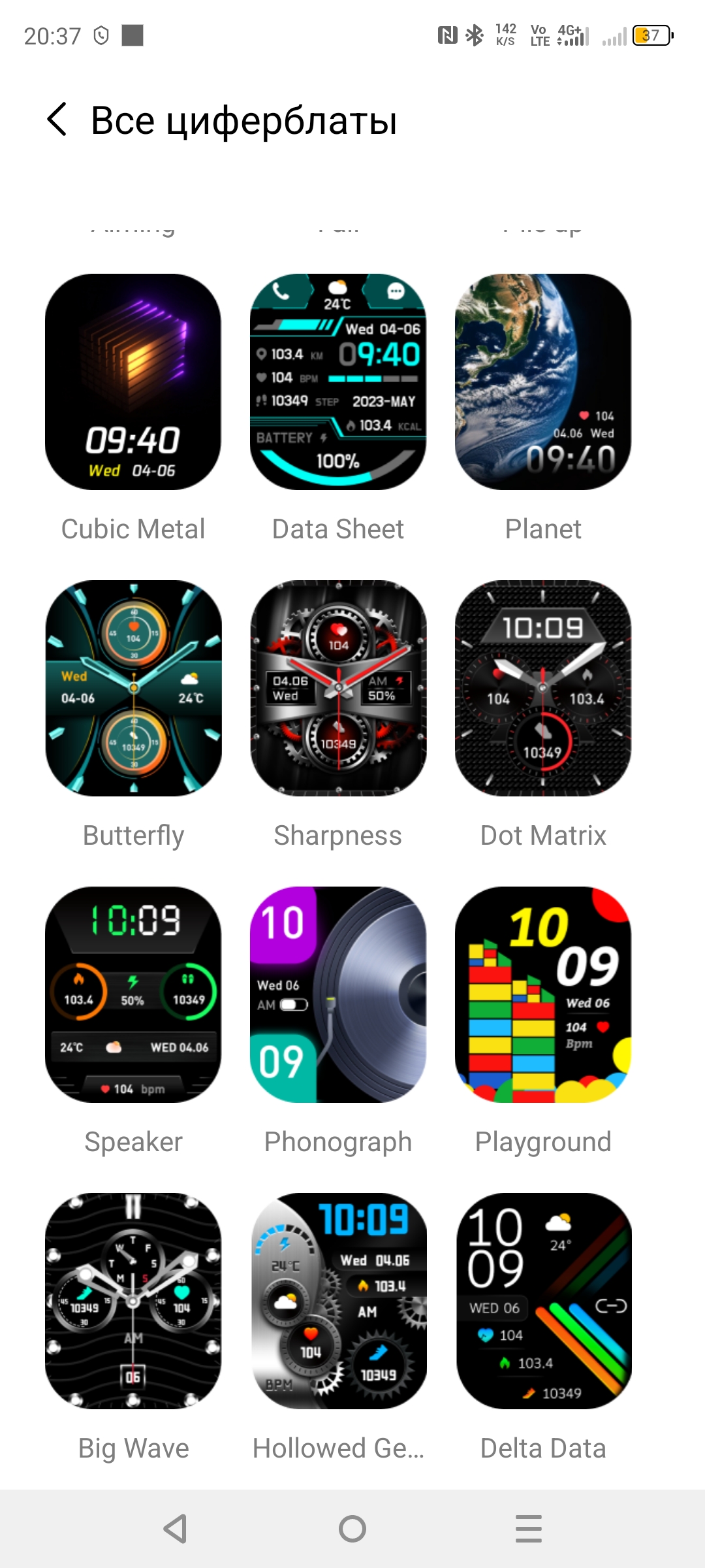 Циферблатов предостаточно, и можно выбрать что-то для себя, но создать свой циферблат и загрузить на фон свое изображение нельзя. Для примера, как это было в одной из прошлых моделей. Скорость загрузки циферблата очень медленная, примерно от 20 до 40 секунд на один циферблат.