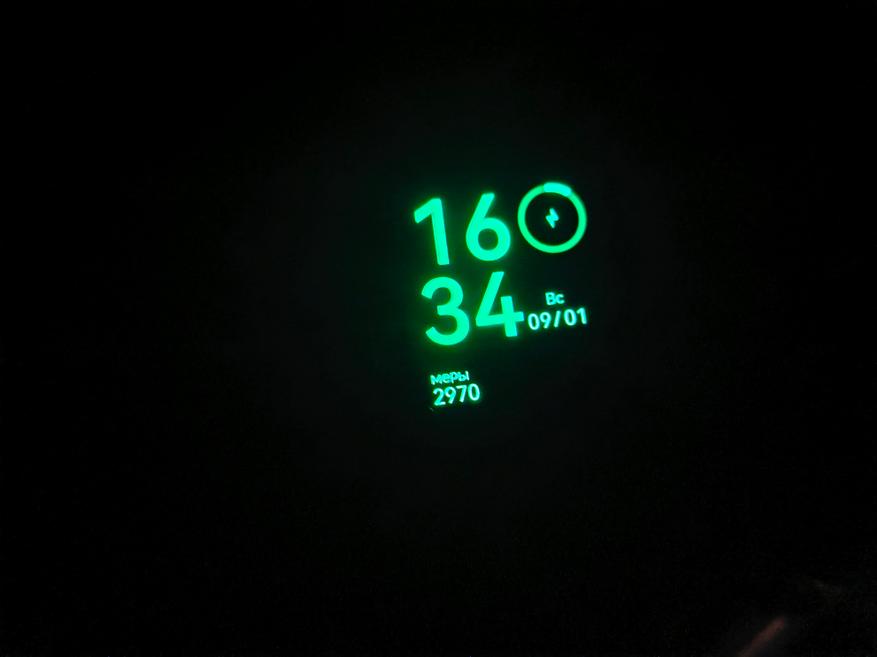 Вторая фишка этой модели — это режим энергосбережения. У вас включается ограниченный режим с зеленым циферблатом и на минимальной подсветки. У вас отображается время, уровень заряда аккумулятора, текущая дата и количество шагов. Все остальные функции отключаются.