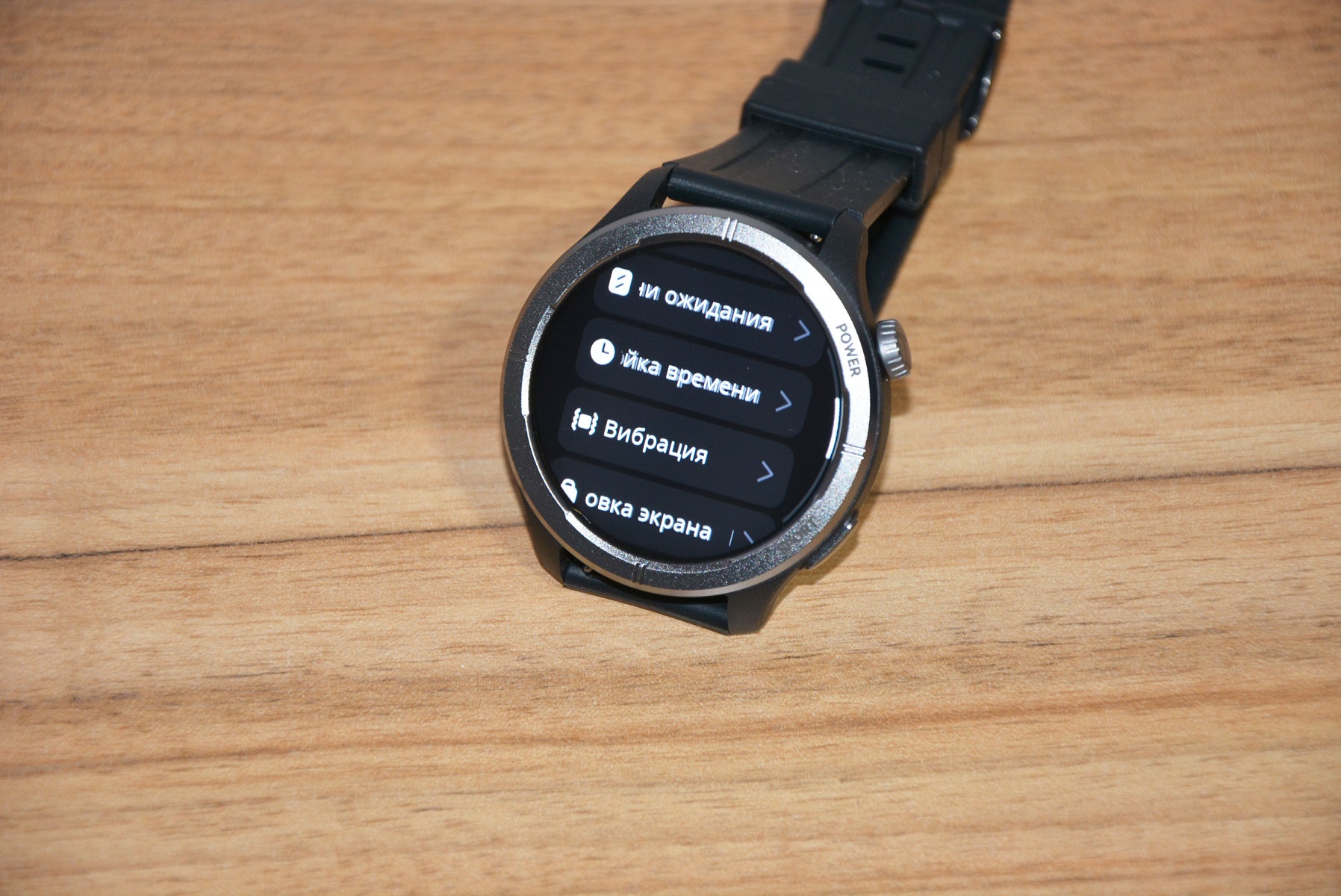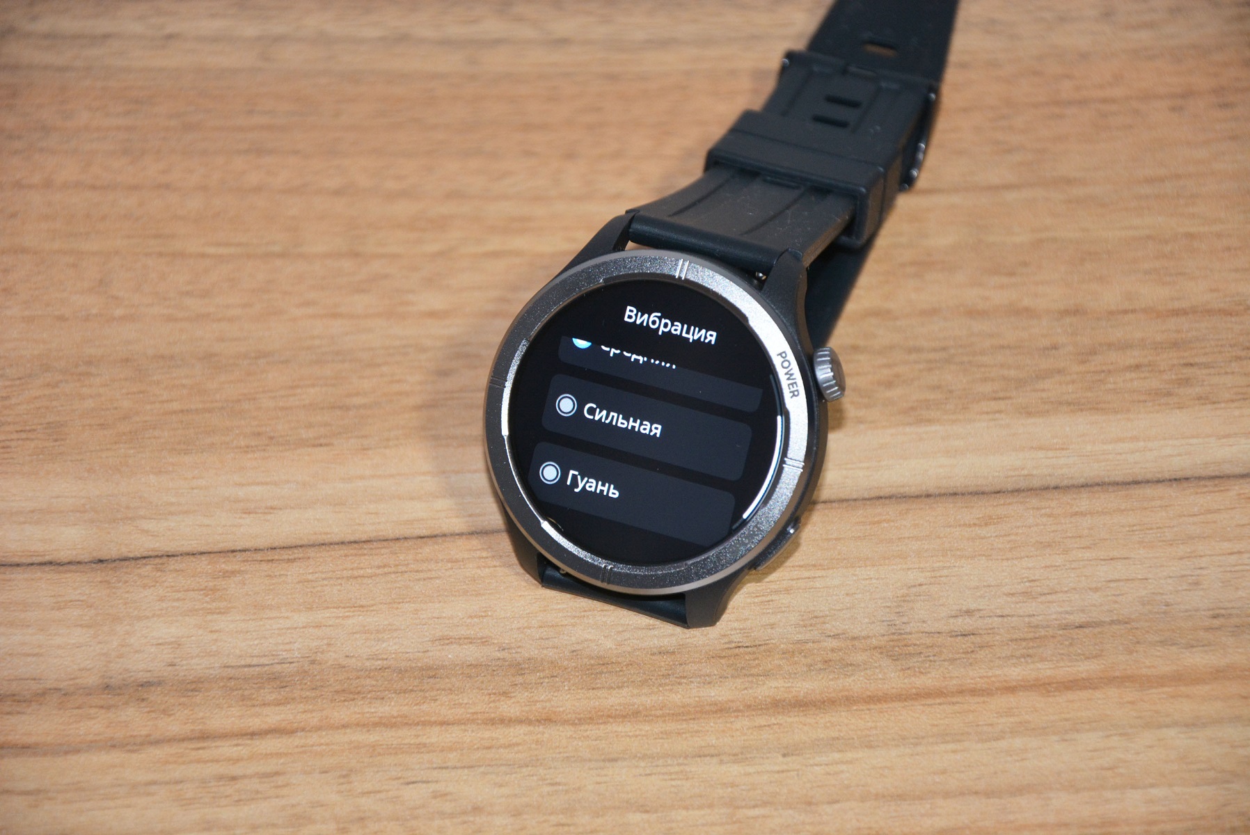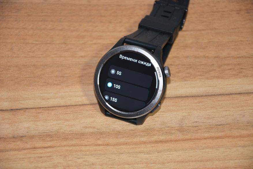 В некоторых местах интерфейса ощущаются «трудности перевода», но в целом все понятно, иногда даже забавно. Так в меню настроек «Посмотреть лицо» — это смена циферблата). «Время ожидания» — установка времени свечения экрана (от 5 до 30 секунд) + отключение вывода уведомлений из месенджеров на экран. Тут же в меню настроек можно настроить формат вывода времени, а пир выборе настроек вибрации обнаружить некий пункт «Гуань»).
