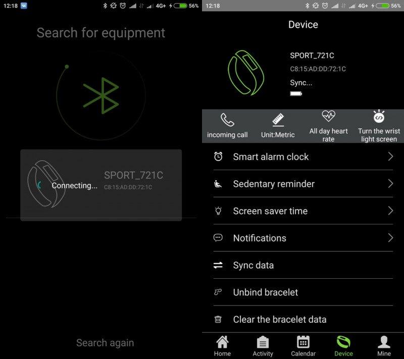 После подключения и синхронизации, через приложение можно управлять настройками часов, а также просматривать свою активность: