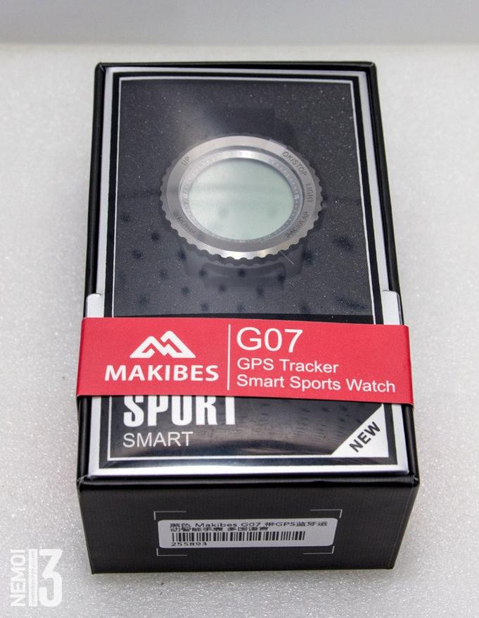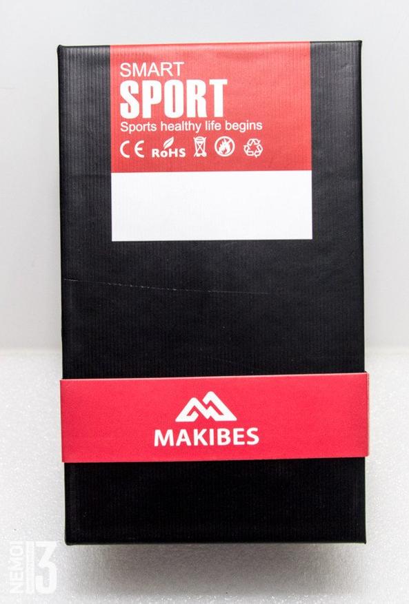 Поставляются часы в коробке, которая у фирмы Makibes используется и для других моделей. Отличие только в наклейке и бумажном ремешке, с указанием модели:
