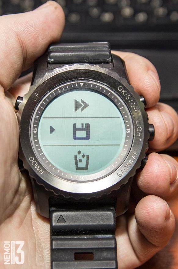 Если в режиме ожидания часов нажать правую нижнюю кнопку, то мы попадаем в основное меню часов: