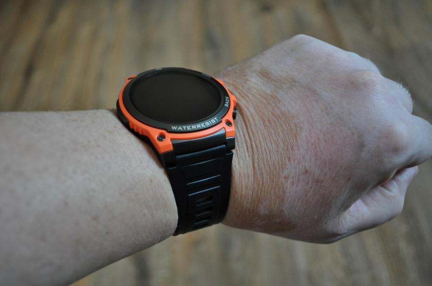 Первое впечатление о часах — они имеют внушительный размер и брутальный внешний вид. Рубленые формы корпуса подчеркивает агрессивный оранжевый цвет рамки вокруг экрана. Как я уже писал выше, в сером цвете часы смотрятся более спокойно.