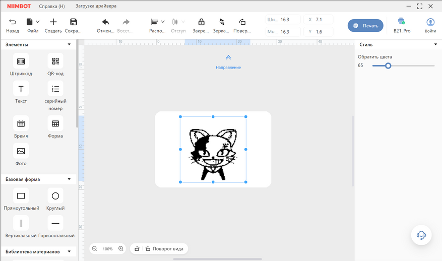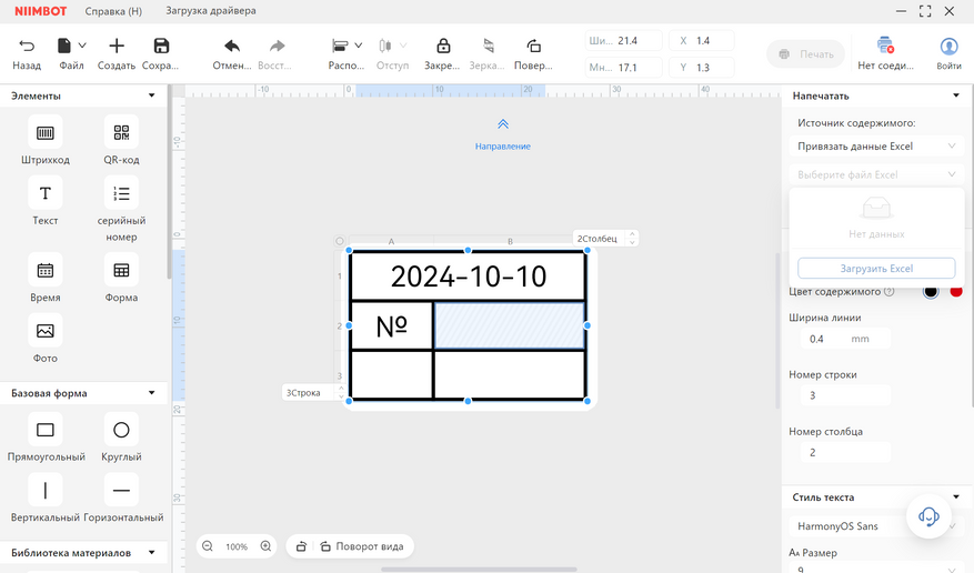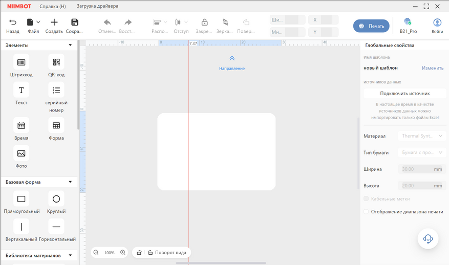 Для начала печати необходимо скачать приложение NIIMBOT из App Store или Google Play. Первоначальная настройка приложения не вызывает никаких трудностей, локализация нормальная, интерфейс достаточно интуитивный.