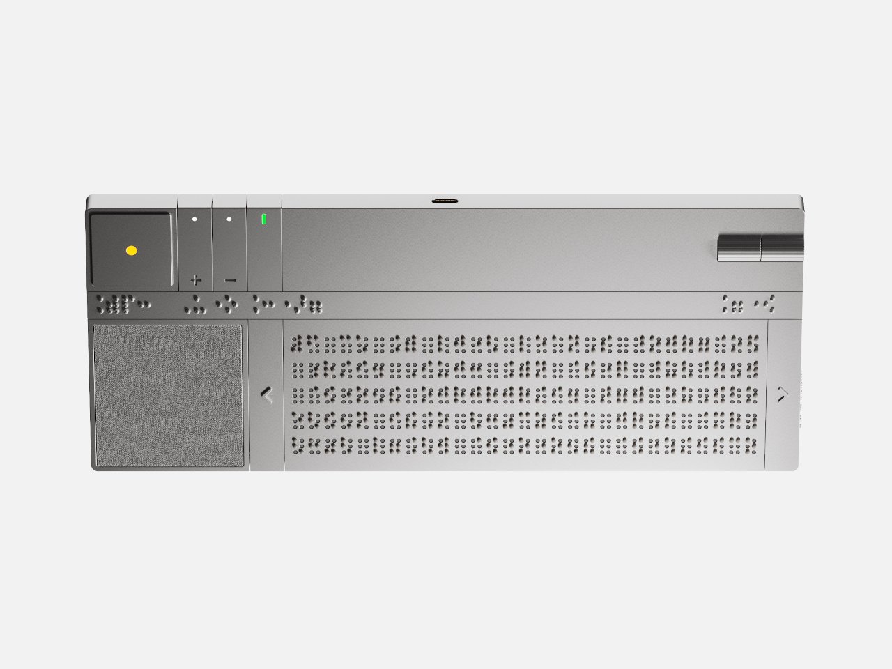 Технические характеристики Dotary включают тонкий алюминиевый корпус, силиконовые кнопки с тактильной обратной связью и жёлтые светодиодные индикаторы для визуальной обратной связи. Обновляемый дисплей Брайля разработан с учетом комфорта при длительном использовании.