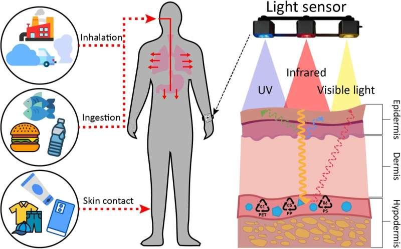 Устройство основано на миниатюрном спектрометре, который направляет через кожу световые волны различных диапазонов — видимого, ближнего инфракрасного и ультрафиолетового — и фиксирует степень их отражения. Различные виды пластика обладают уникальными оптическими характеристиками: они по-разному поглощают и отражают свет, что позволяет датчику идентифицировать конкретный тип полимера.