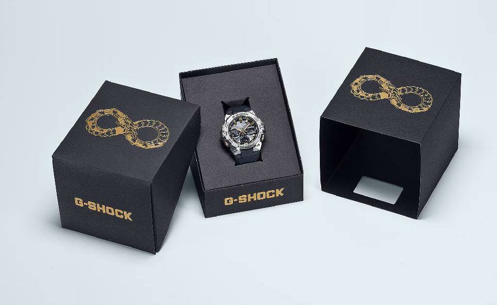 Коробка устройства еще больше отражает тему вечной змеи, символизирующей долголетие и процветание — качества, глубоко укоренившиеся в китайской культуре. Оснащенные функцией Bluetooth, часы синхронизируются с Casio Watches App, что позволяет получать уведомления, находить телефон и автоматически корректировать время.