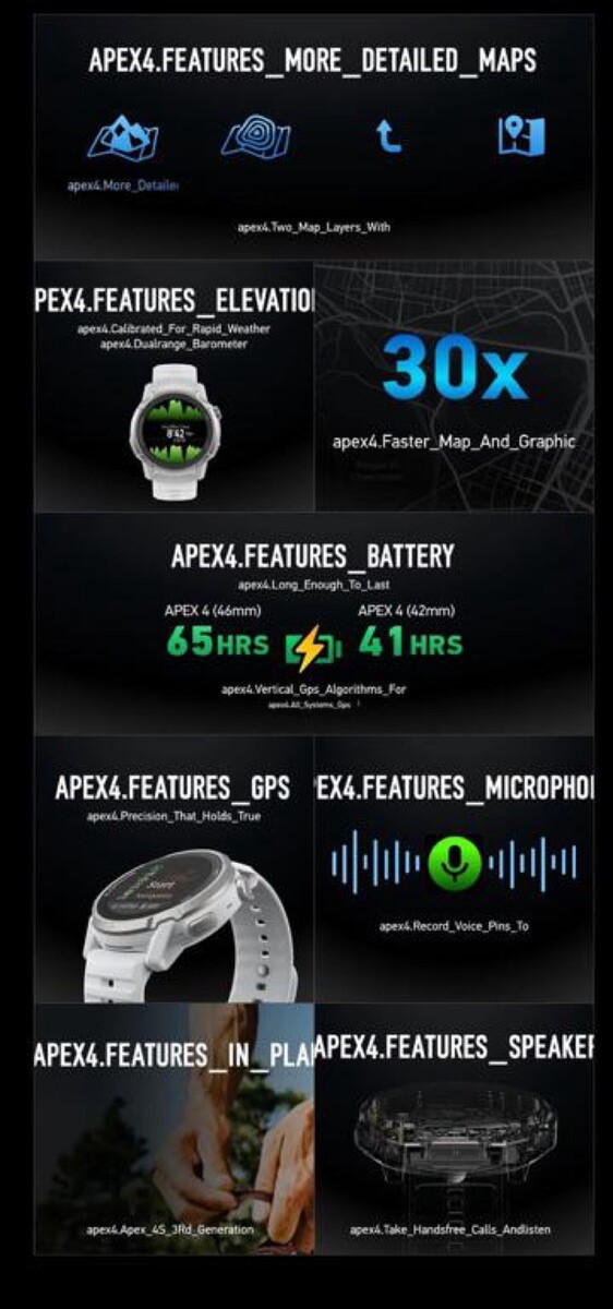 Часы будут выпущены в двух корпусах — 42 и 46 миллиметров. Версия большего размера обеспечит 65 часов работы при активном использовании GPS, младшая модель проработает 41 час в аналогичном режиме. Предыдущая модель Apex 2, которая продается от 349 долларов, показывает 40 часов автономности с GPS и до 13 дней при стандартной эксплуатации.