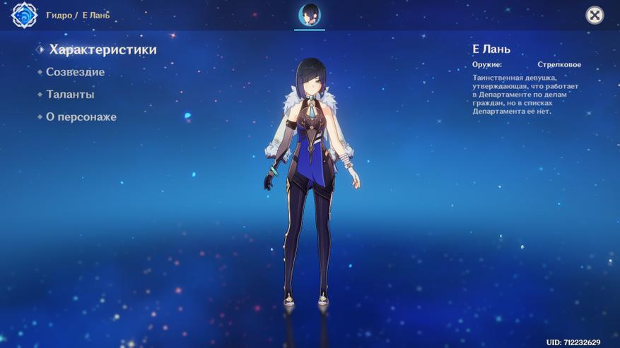 Е Лань — хладнокровная лучница, до недавнего времени считавшаяся бесполезной, но с вводом элемента дерева (дендро) стала незаменимым союзником в командах, основанных на нанесении урона огнём или льдом. В остальном — полная копия Син Цю, но более проста в прокачке, потому как сама способна добывать необходимые ресурсы.