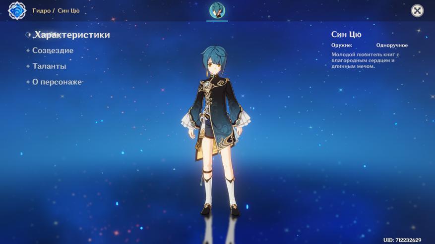 Син Цю — робкий, но бойкий мечник. Встречается практически в самом начале игры. Хорошо подходит для различных испытаний, связанных с водной стихией. Основная механика завязана на призыве мечей, усиливающих атаку и защиту союзников, из-за чего незаменим в командах, основанных на физическом уроне. Прокачка сложна, так как требует добычи редких ресурсов, достать которые без наличия героя с дальней атакой будет проблематично.